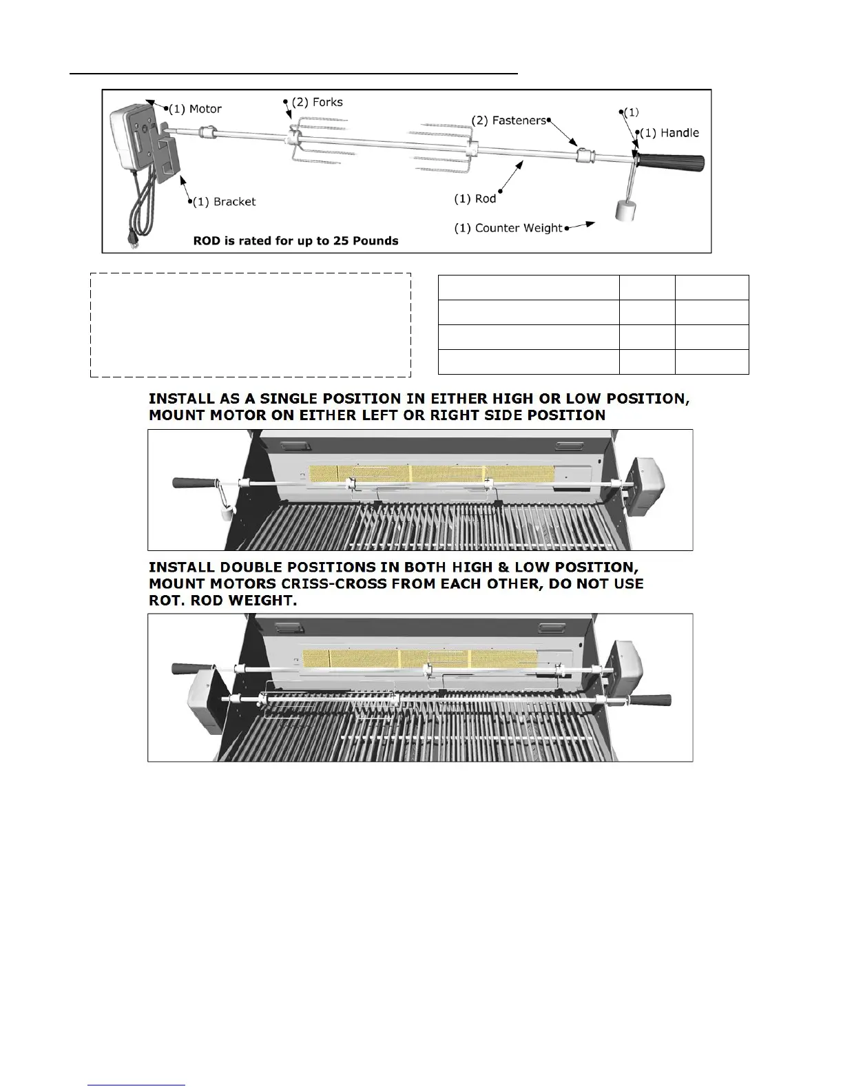 The rotisserie motor is equipped with a three-prong grounding plug for your protection against electric