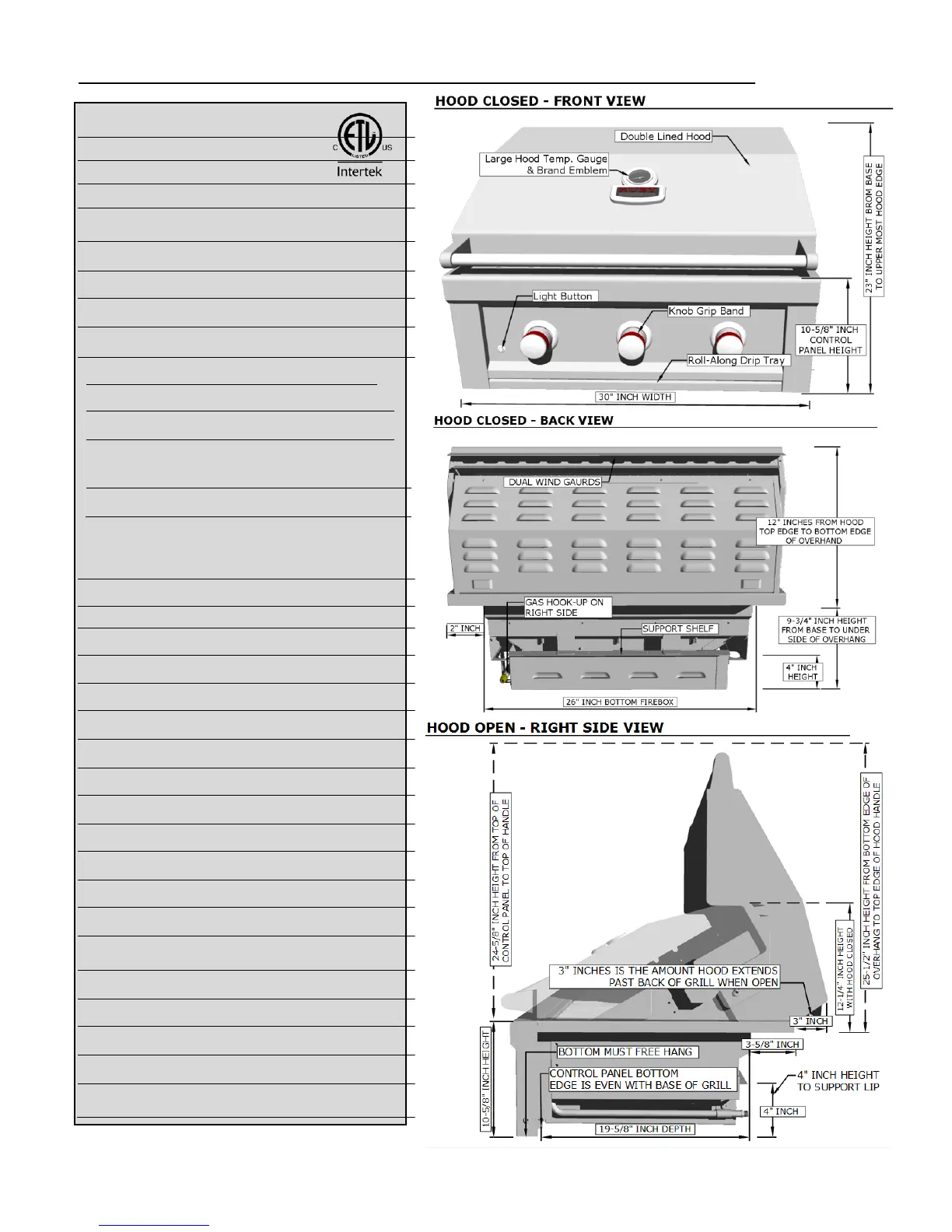 SPECIFICATIONS Ruby 30” 3 Burner - Pro Sear Product Overview