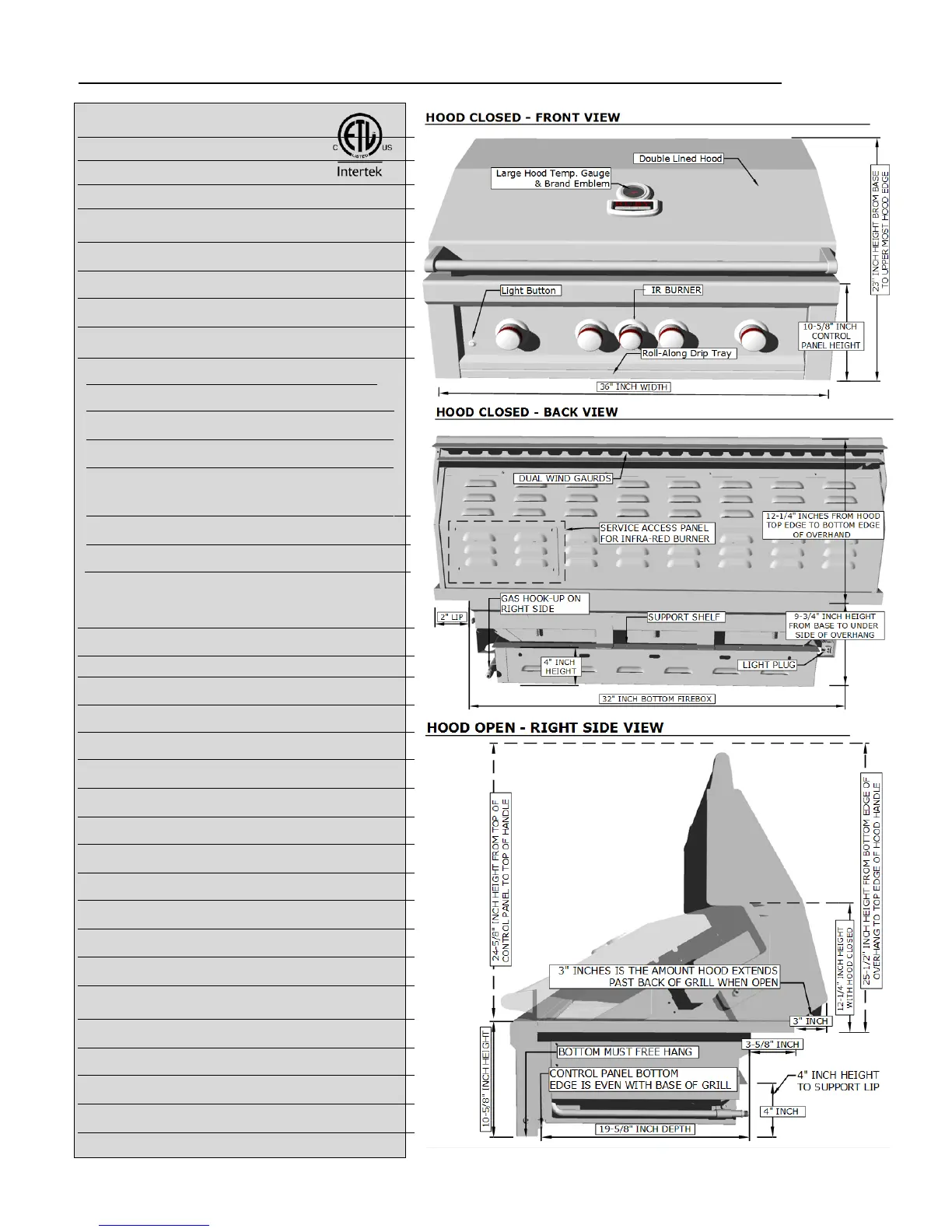SPECIFICATIONS Ruby 36” 4 Burner IR - Pro Sear Product Overview