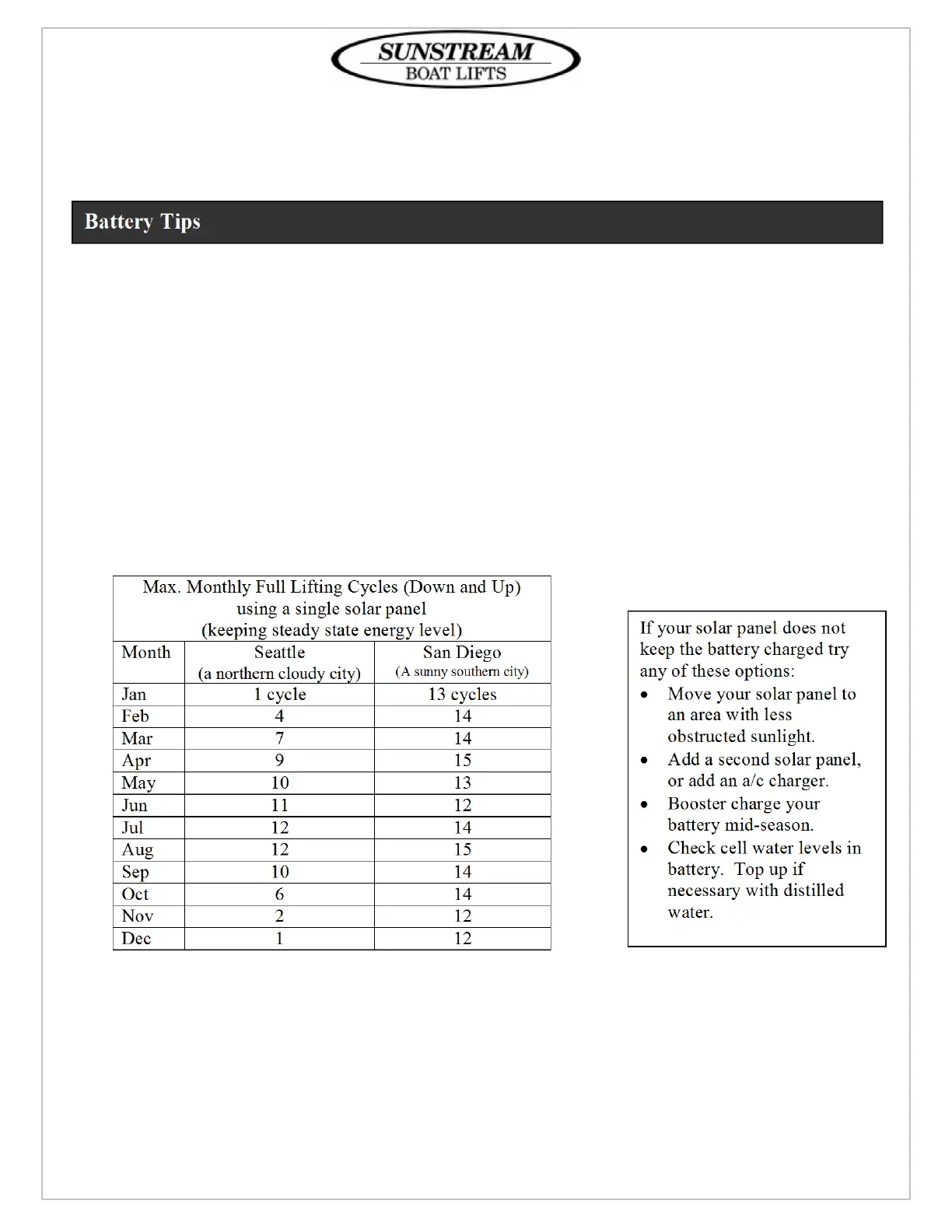 The following values are limits on full cycles (down and up) to keep battery