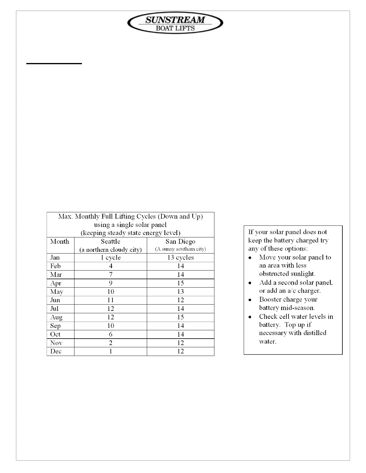 at steady state condition. The capacity of the battery will allow for additional cycles for any particular month.