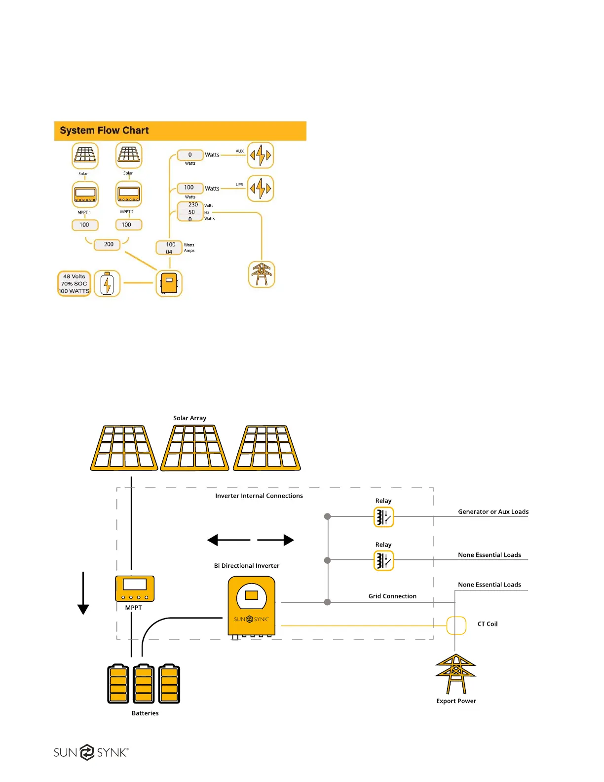 3. The inverter can then supply power to the grid (export or no export), load, and auxiliary or smart load.