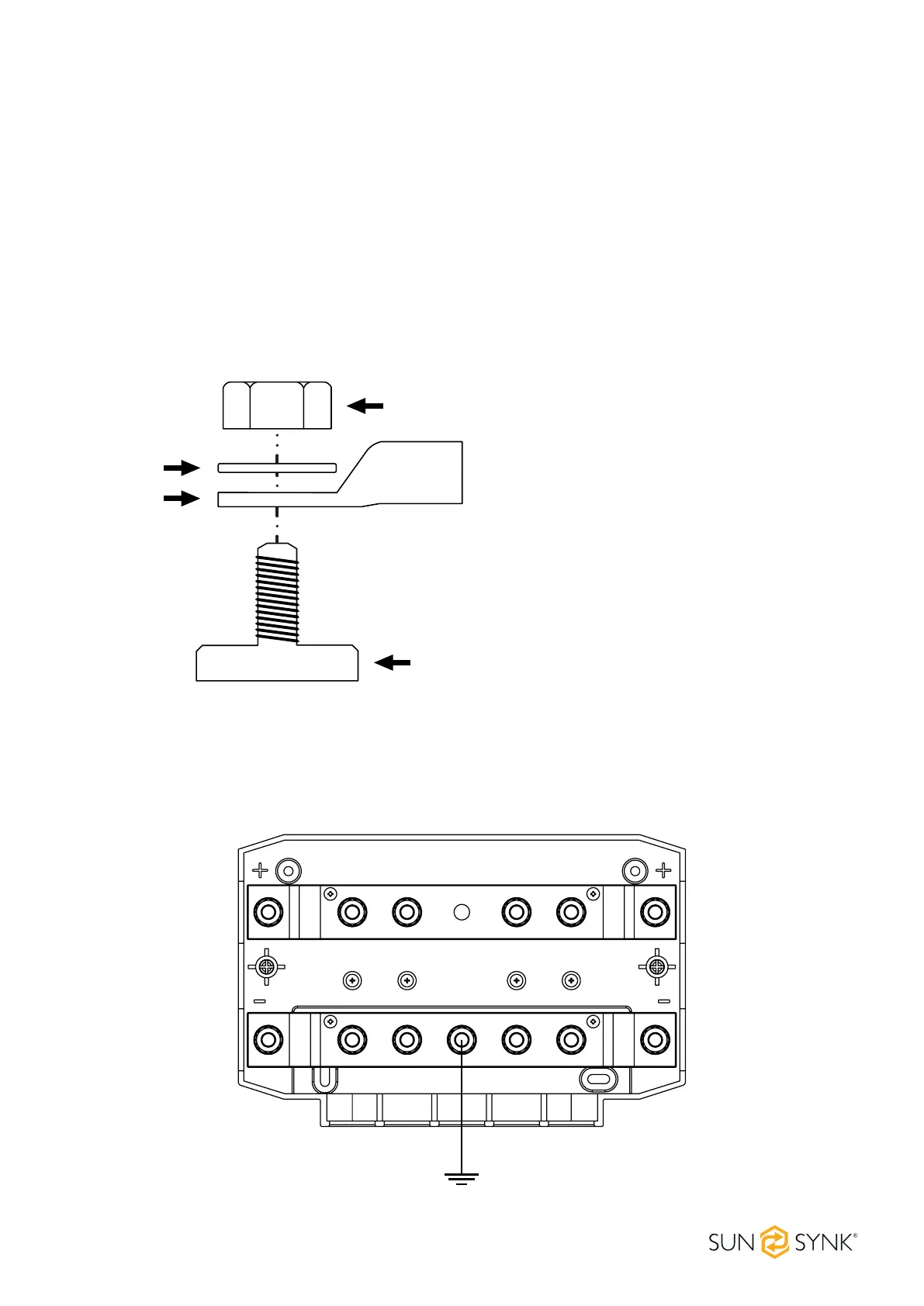 All cables and wires connected to the Sunsynk Busbar need to have been tted with M8 cable lugs.