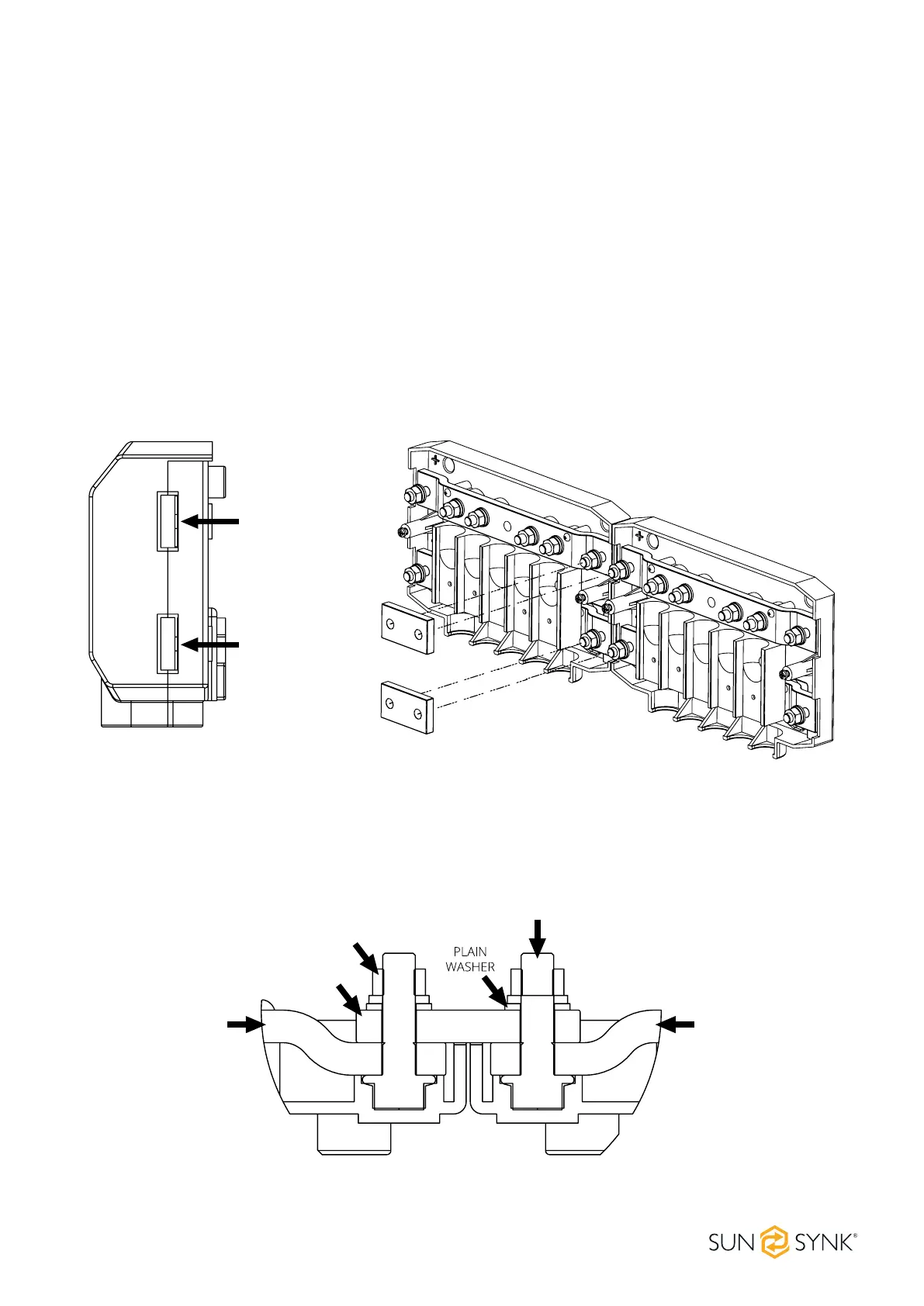 Connect all Sunsynk Busbar's to each other using the M8 holes, bolts and links provided.