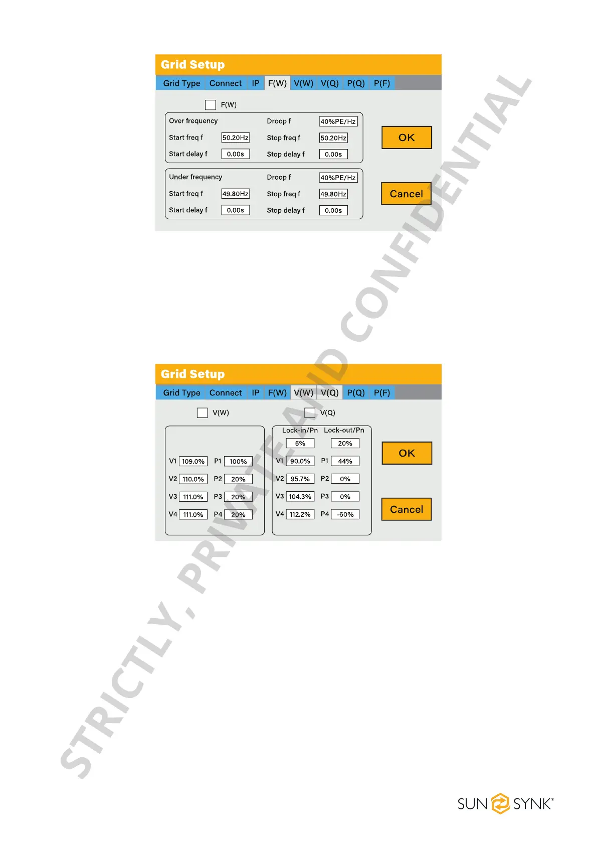 For example: “Startfreqf>50.2Hz,Stopfreqf<50.2,Droopf=40%PE/Hz”whenthegridfrequencyreaches