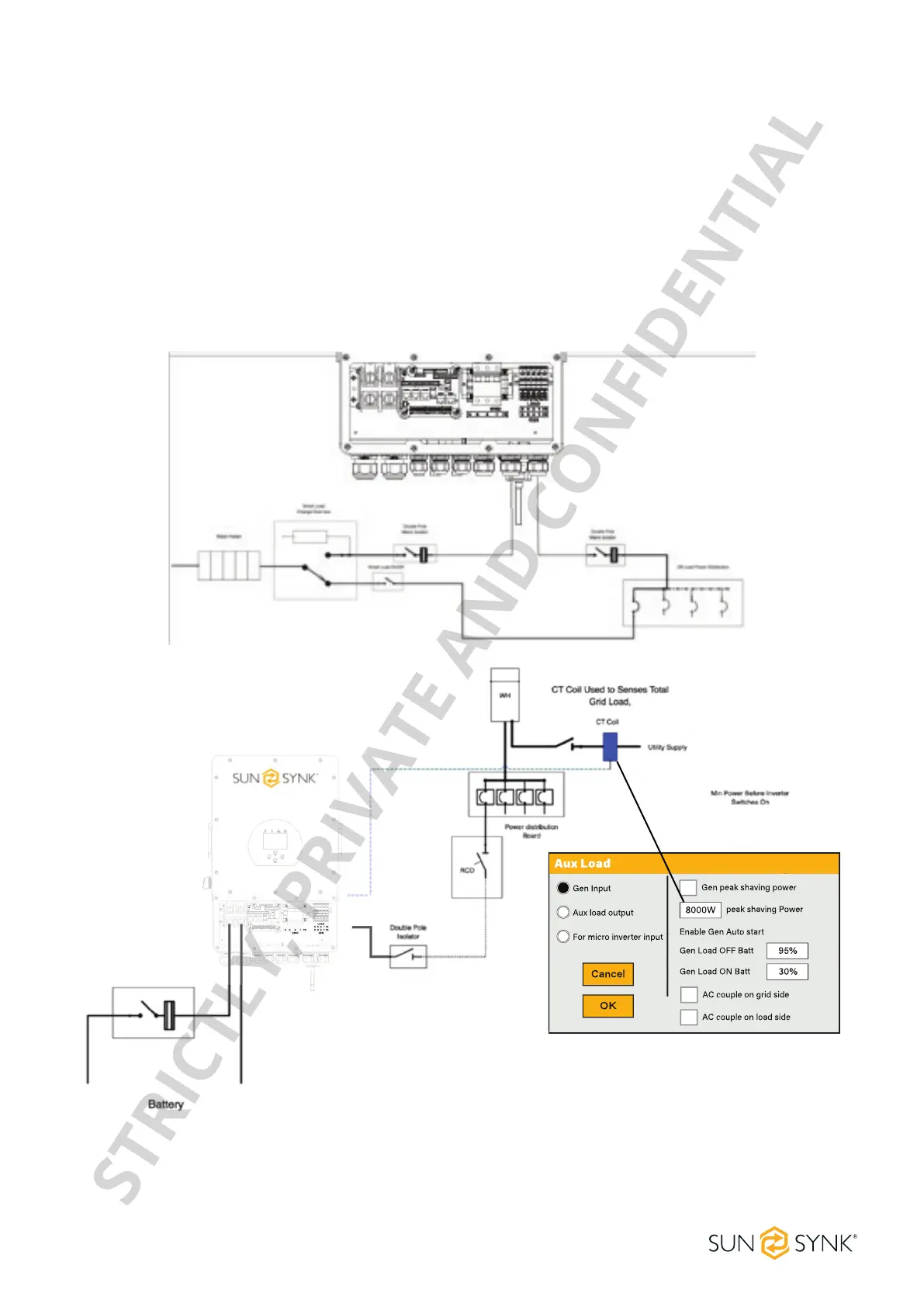 Gen Load ON Batt: Battery level when the Aux load switches on.