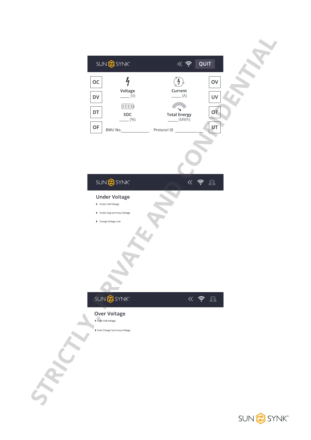 SunSynk INNAGATOR - Fault Pages; Under Voltage (UV); Over Voltage (OV)