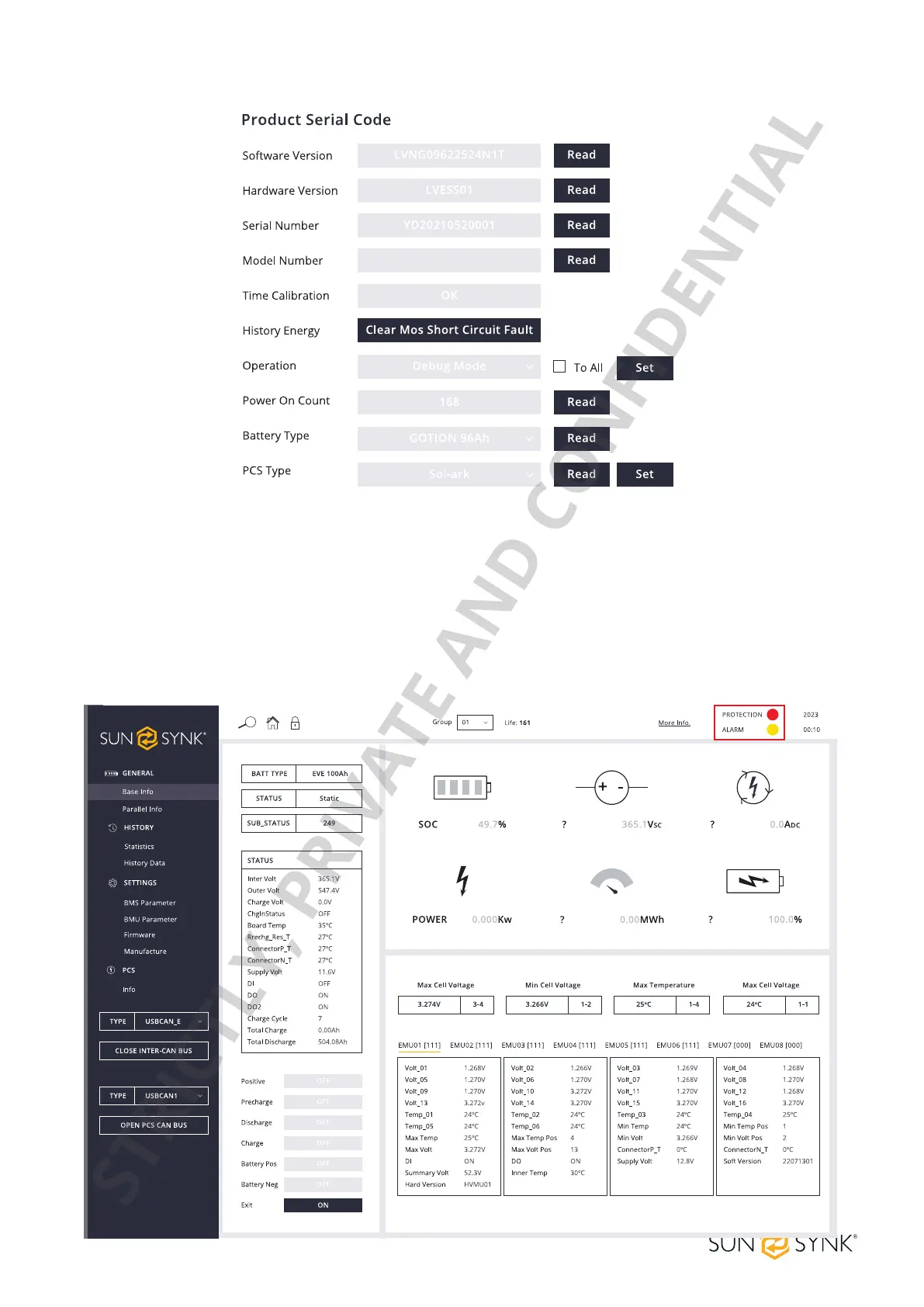 In the parallel system application, click the OPEN INTER-CAN BUS button. By default, the data monitoring