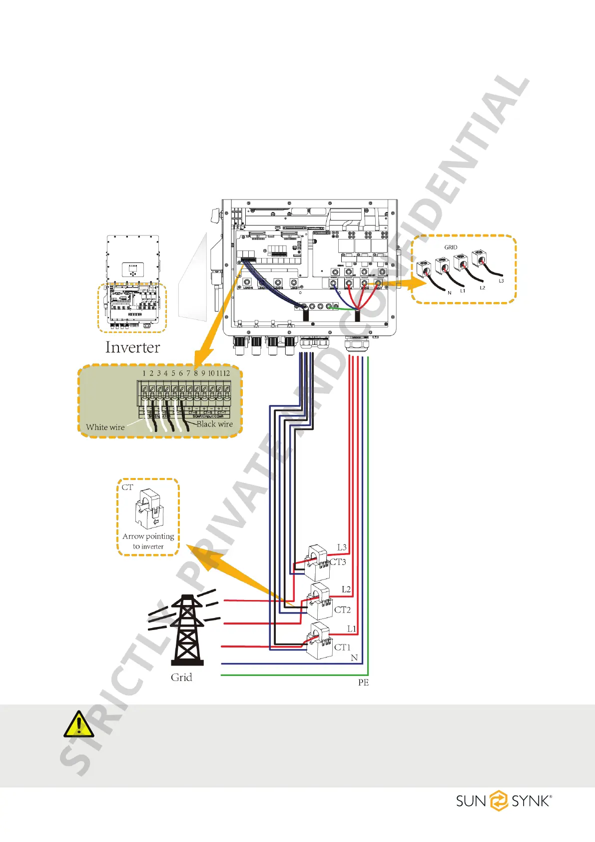 2. Connect the other end of the CT coil to the inverter terminals.