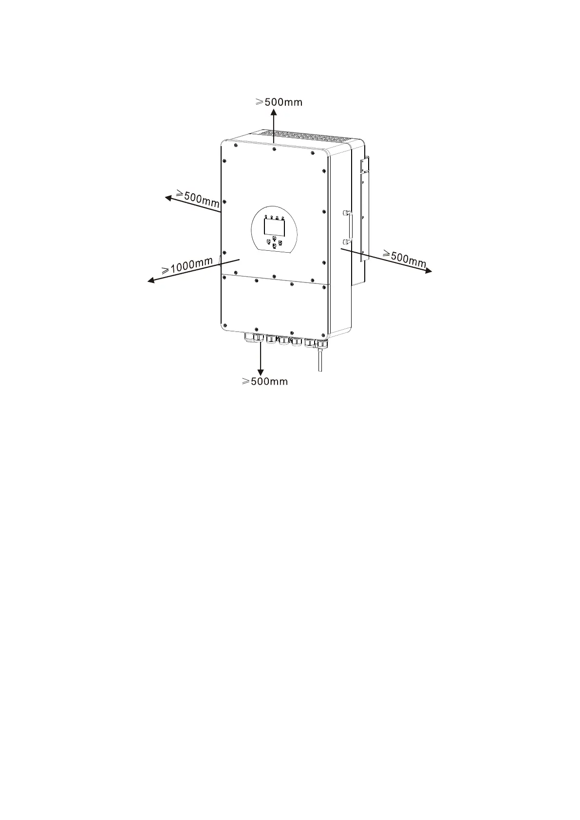 500mm above and below the unit, and 1000mm to the front of the unit.