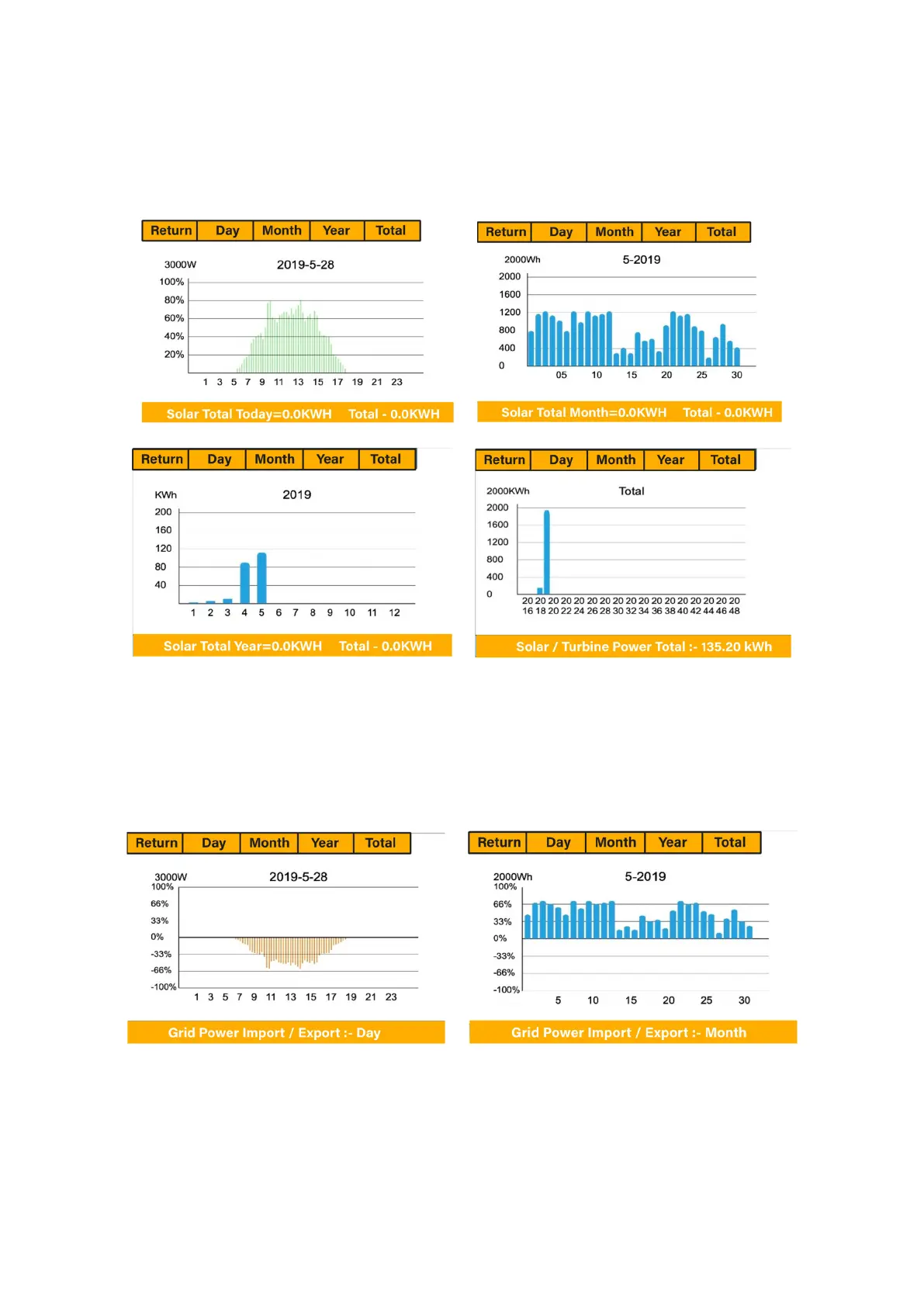 This page shows the Daily / Monthly / Yearly and total grid power export or consumed.