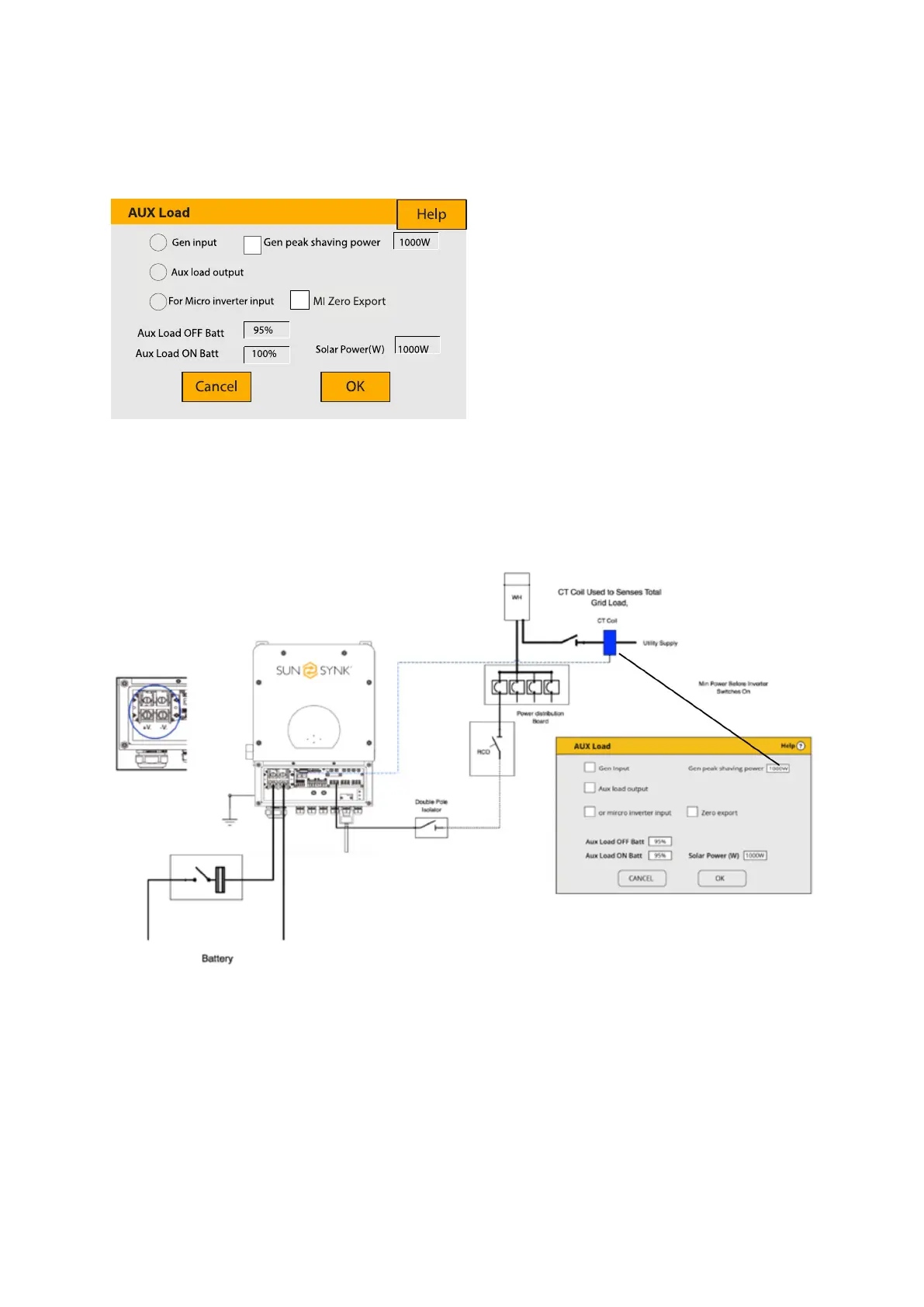 To configure Peak Power Shaving function, click on the AUX LOAD icon.