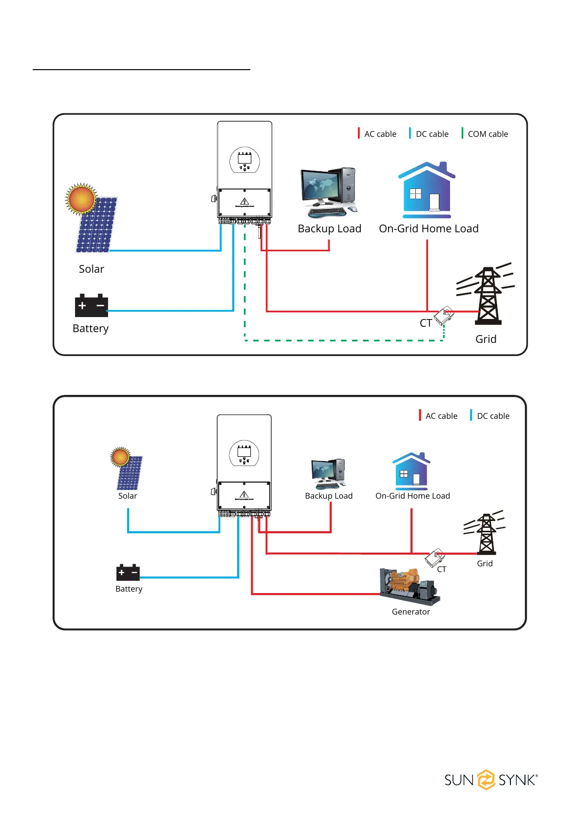 SunSynk SYNK-7K-SG05LP1 - OPERATING MODES; Mode I: Basic and Mode II: With Generator