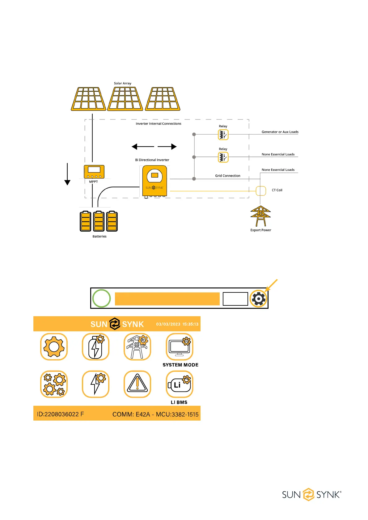 Access the advanced settings such as Paralleling and Wind Turbine (press the ADVANCE icon).