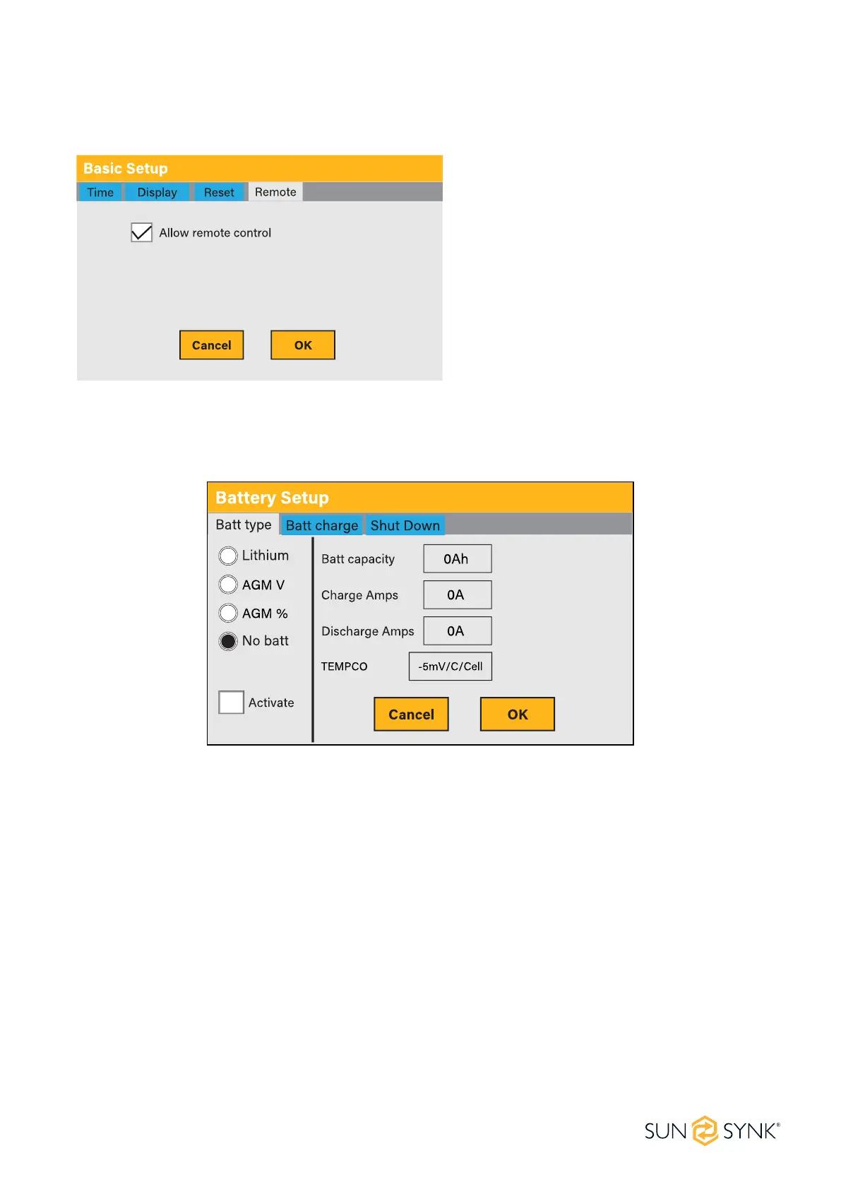 To congure battery settings, click on the BATTERY icon and then on ‘Batt type’.
