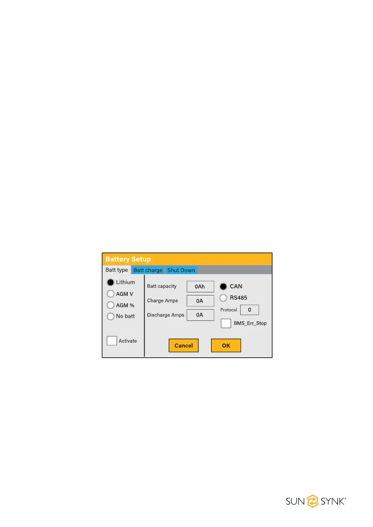 This information will only display if the ‘Lithium’ option is selected under ‘Batt Type’.