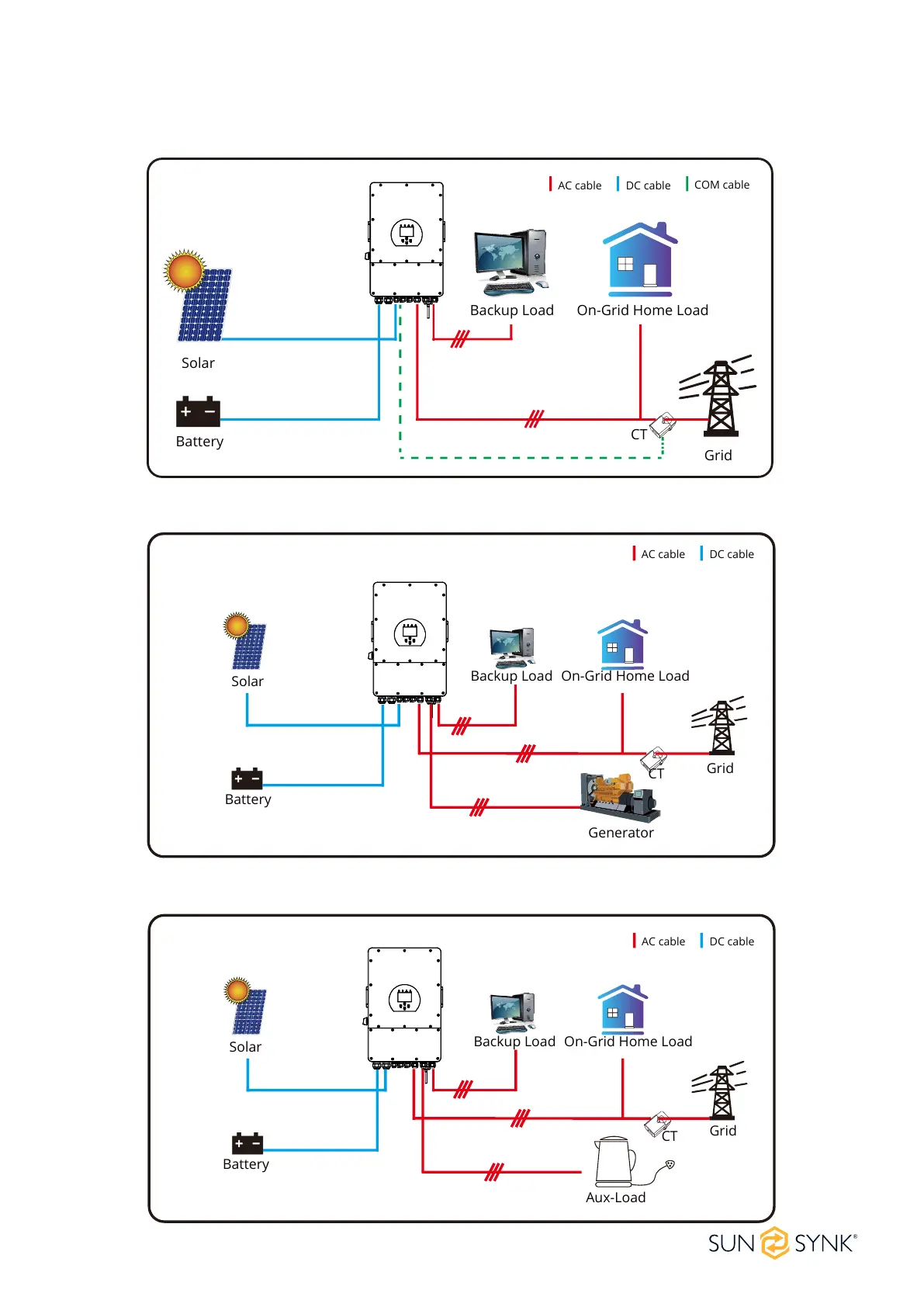 SunSynk SYNK-8K-SG04LP3 - Operation Modes; Mode I: Basic; Mode II: With Generator; Mode III: With Aux-Load