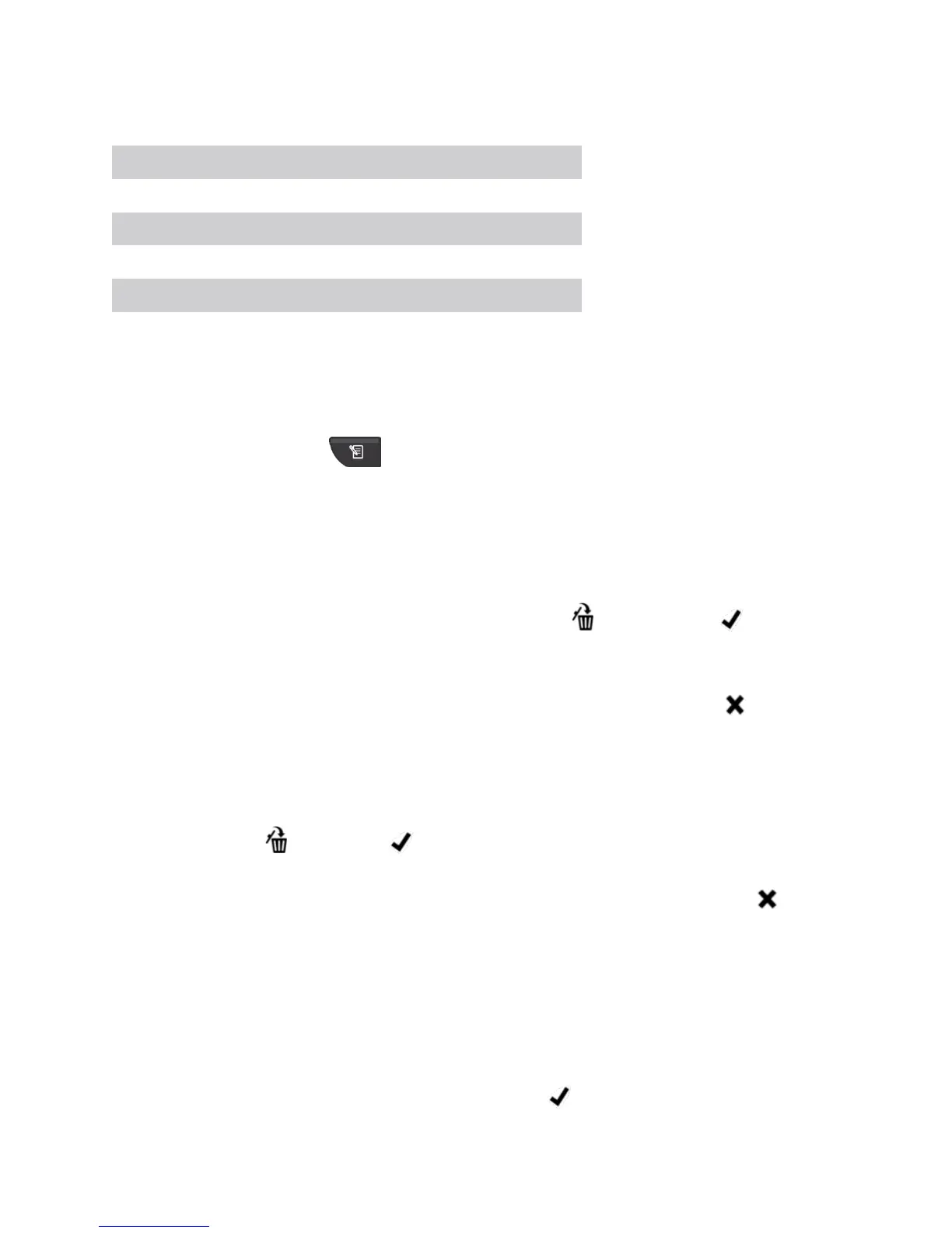 The Memory Delete icon and Check icon will flash in sync with the Selection Knob. All other values on the