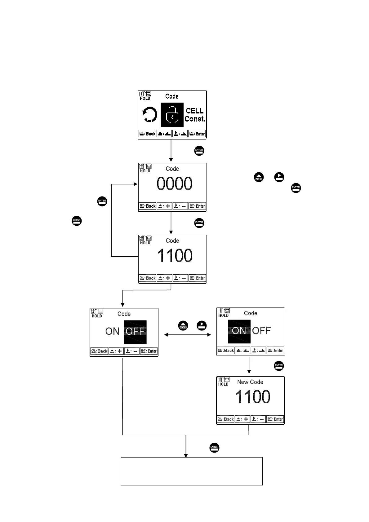 Select the Code (password) icon after entering calibration setup mode. Select to