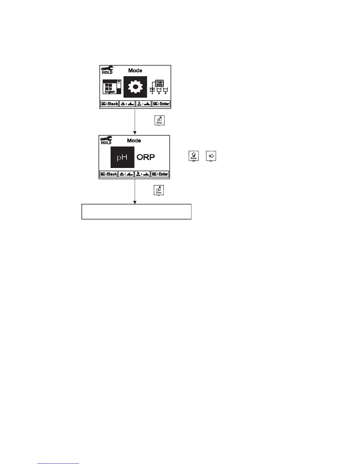 Enter setup of “Mode”. Select between “pH” or “ORP” measurement.