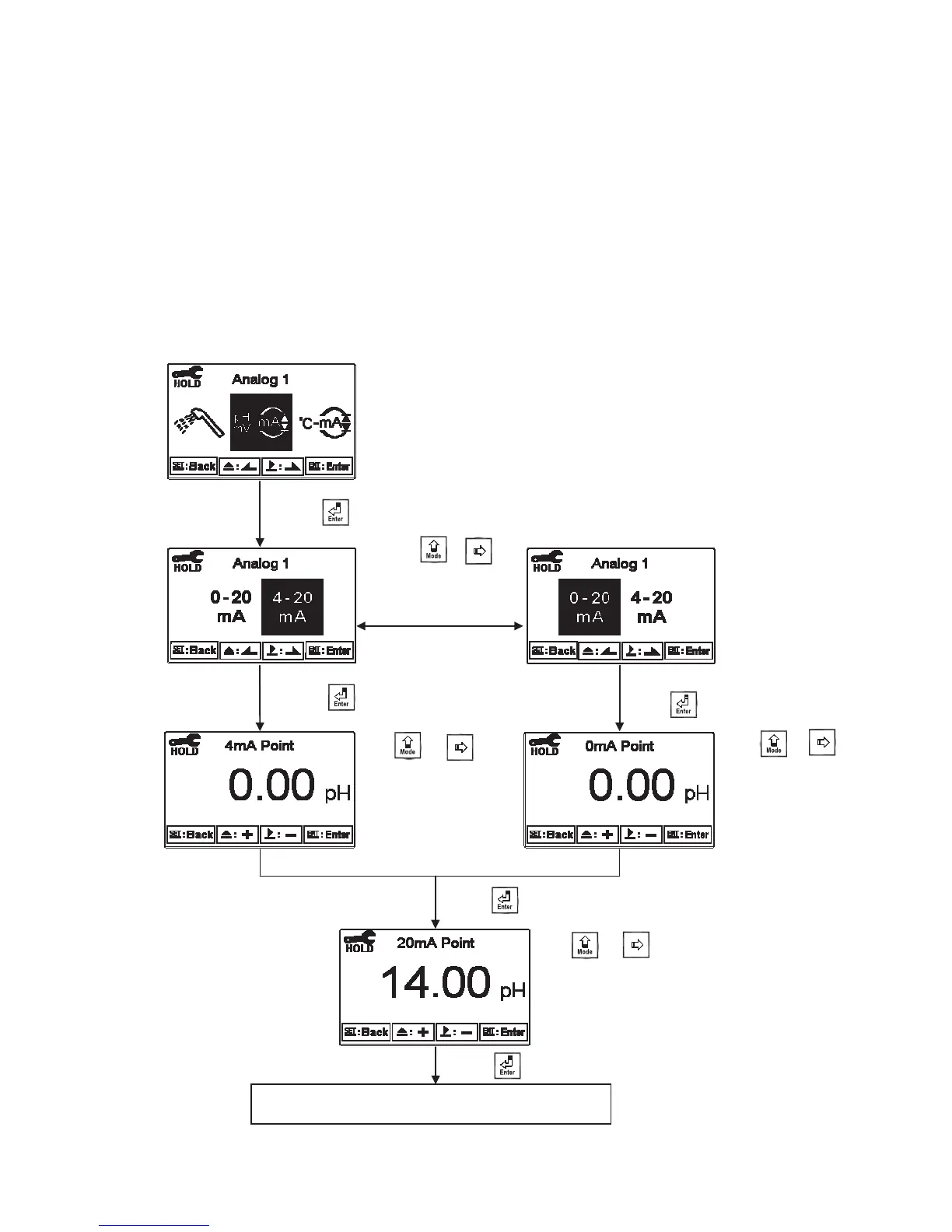 Enter setup of Analog 1. Select 0~20mA or 4~20mA current output. Set the related value to the