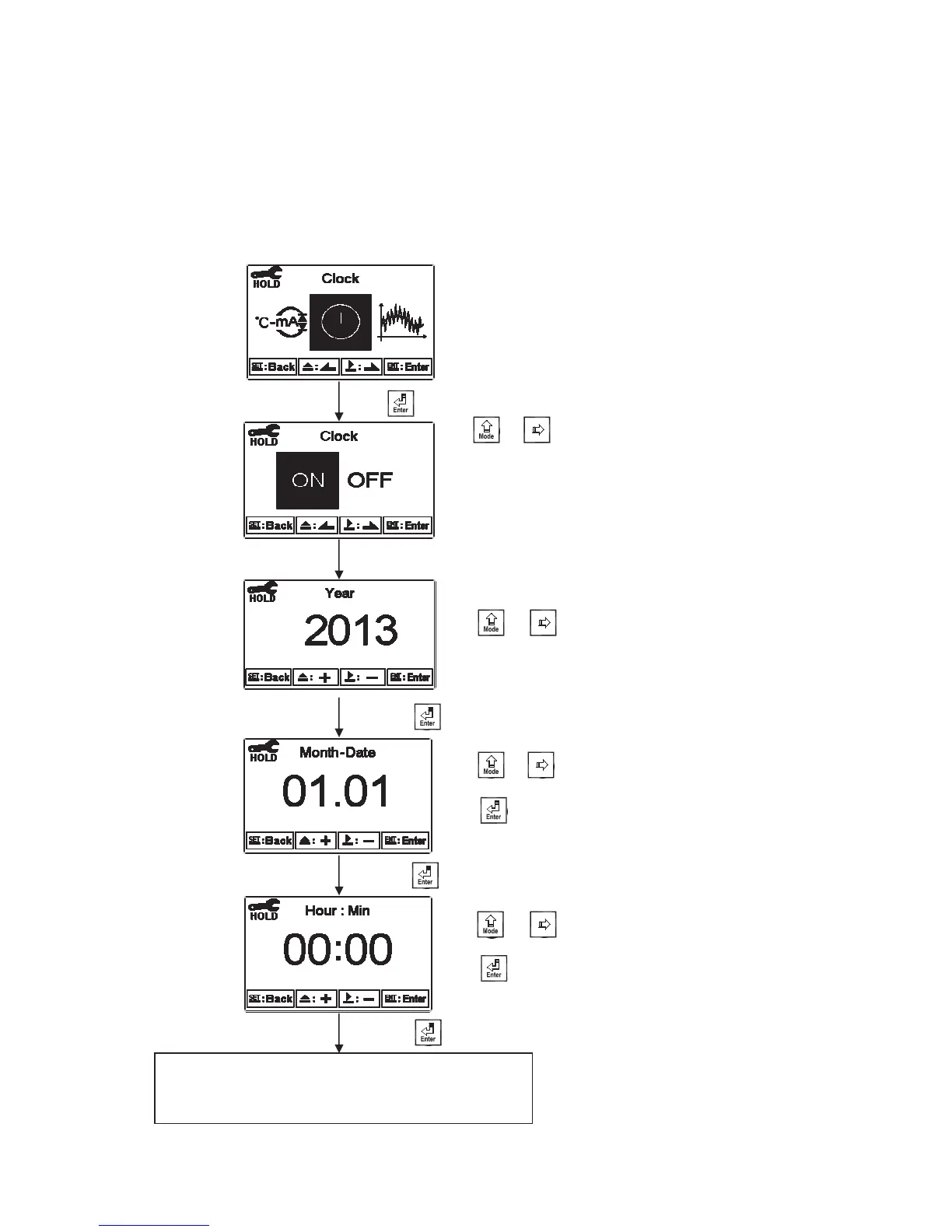 you select to turn off the clock function, there will not display clock under measurement mode. The