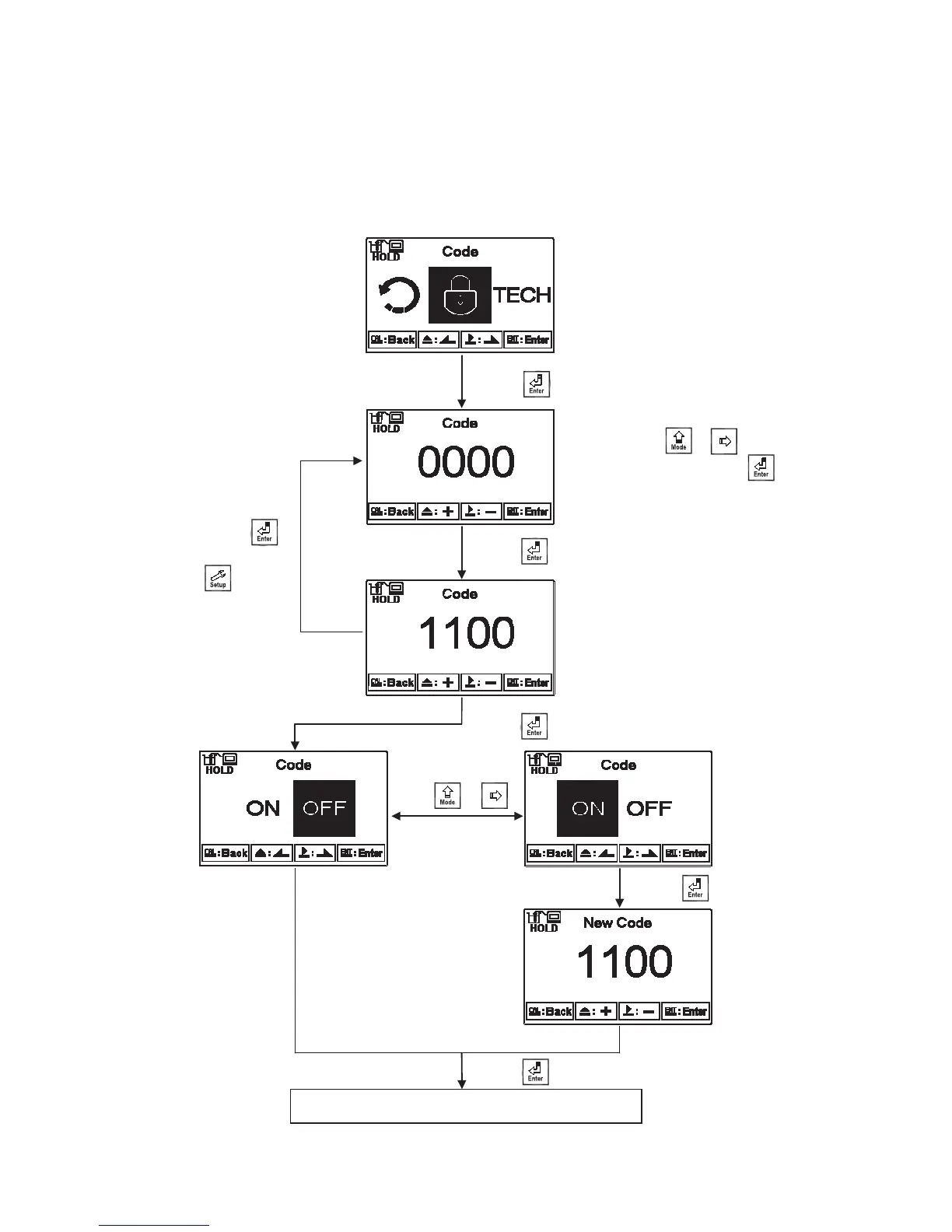Select the Code (password) icon after entering calibration setup mode. Select to activate code