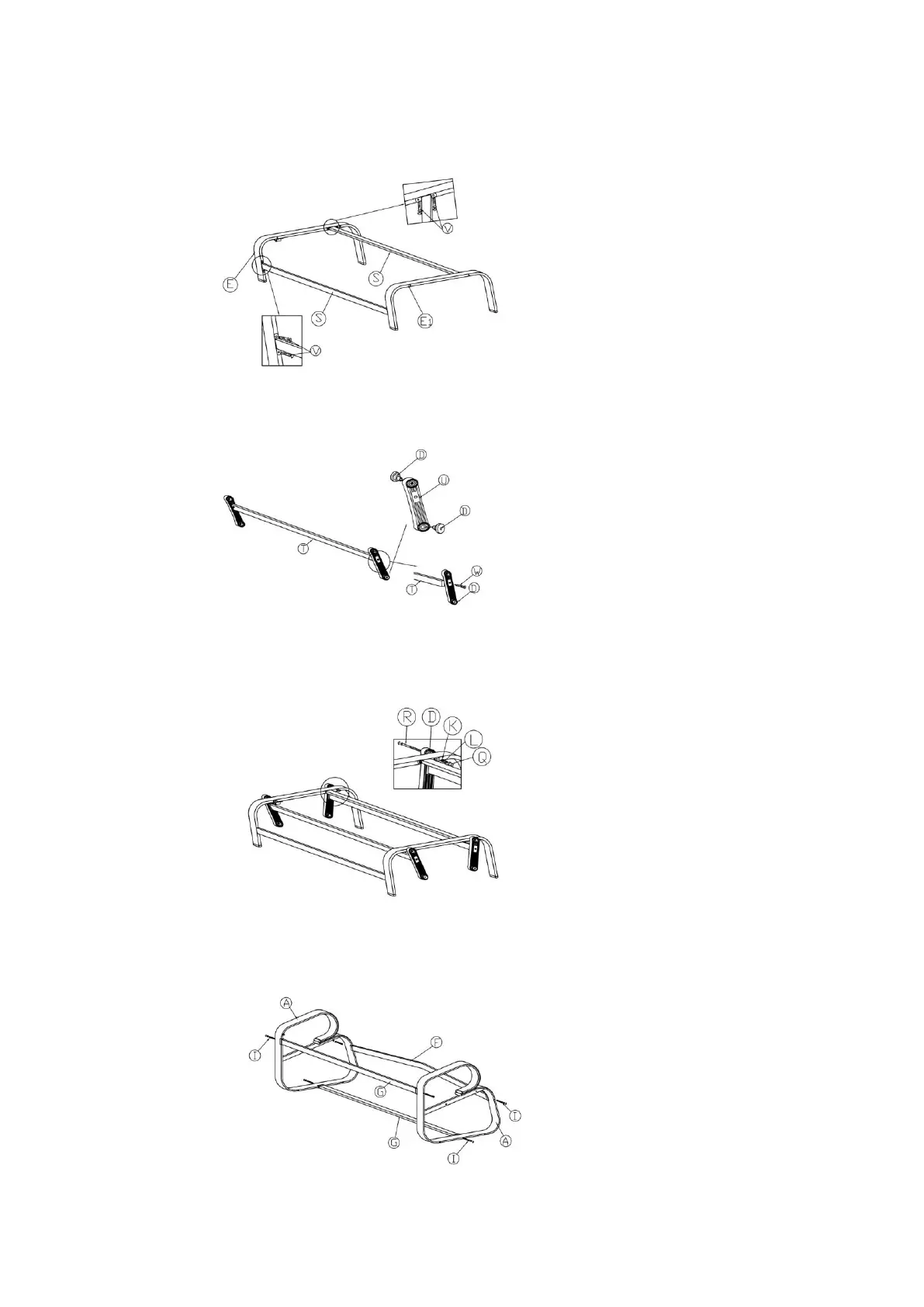 III) Attach assembled parts to the base frame, use bolts R and add parts K and L