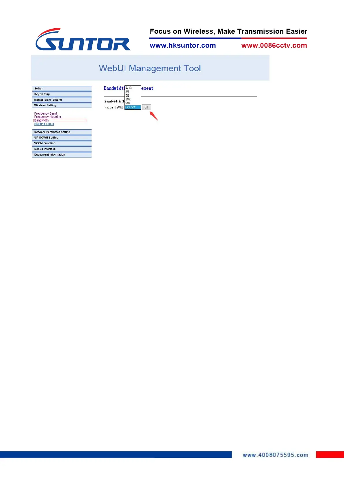 select the working bandwidth