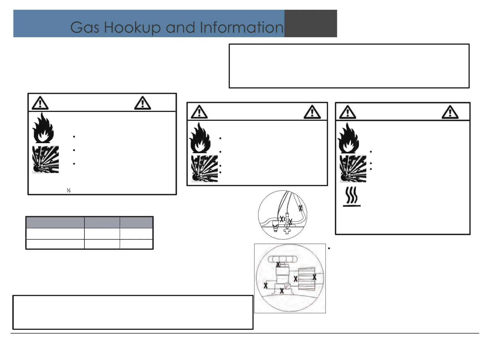 gas supply piping system during any pressures in excess of 1/2 psi / 3.5 kpa.