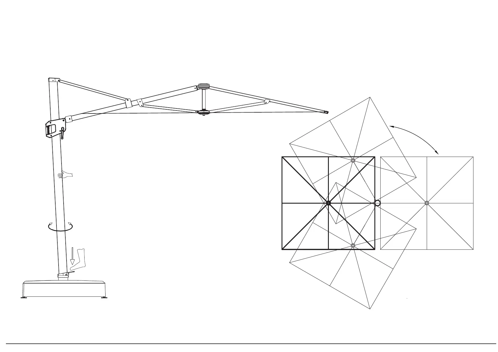 Appuyer sur la pédale pour faire pivoter le parasol