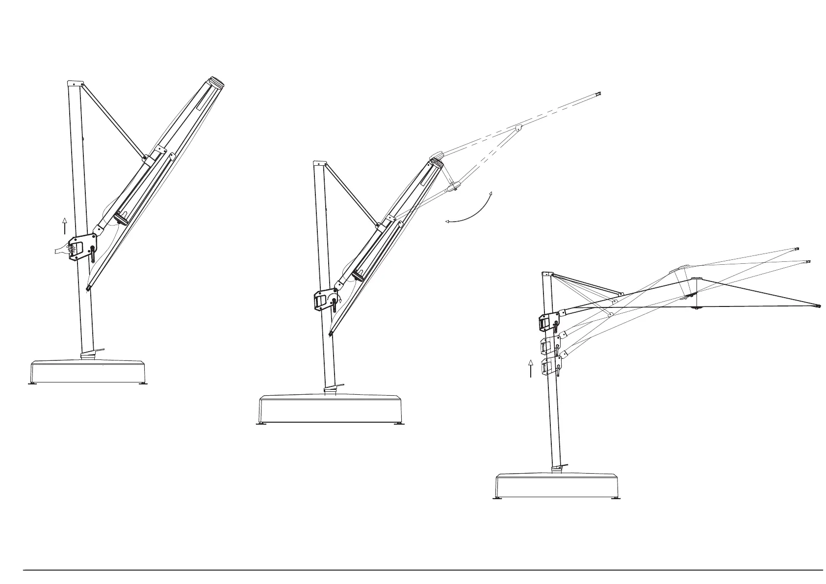Rotate crank to open or close umbrella.