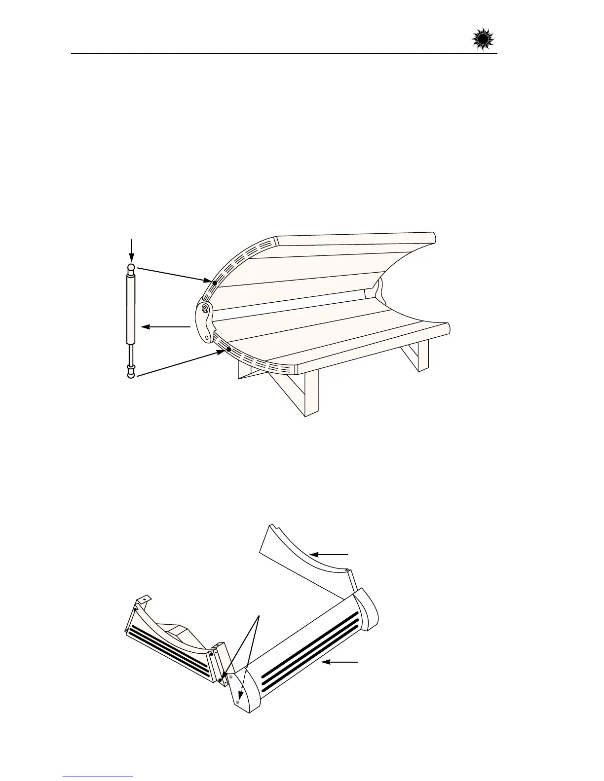 Attach the gas springs (located in canopy box) between the canopy and the bench