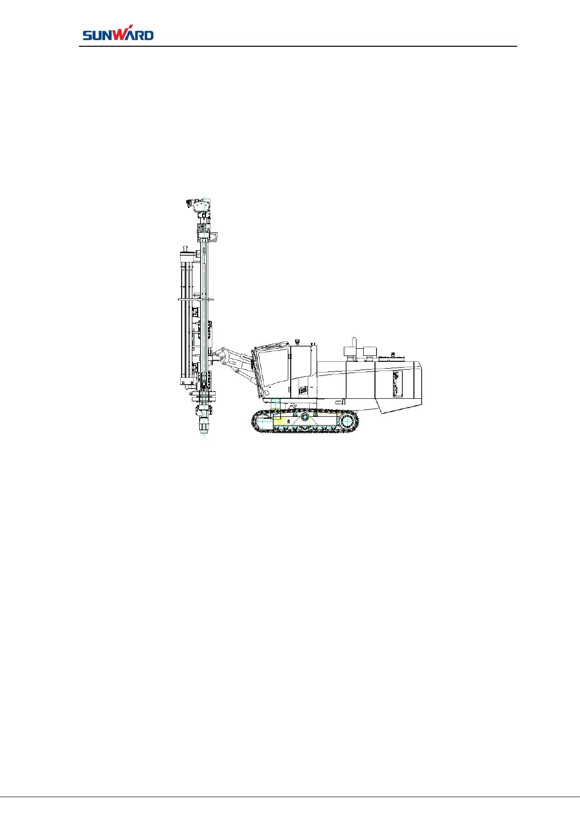 The machine is impacting rotating type hole drilling rig. Main components are feed