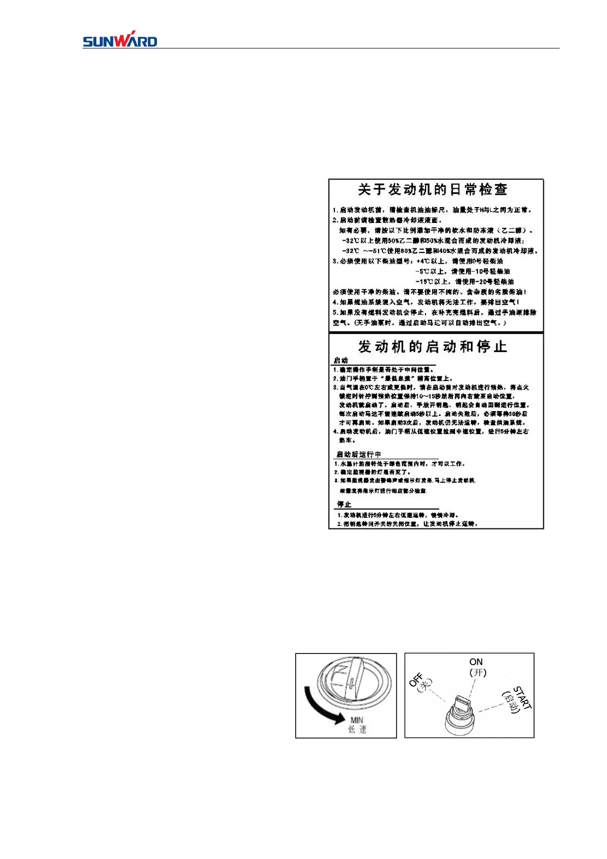 4. Turn the key right to START position to start the engine. Release the key, the switch would
