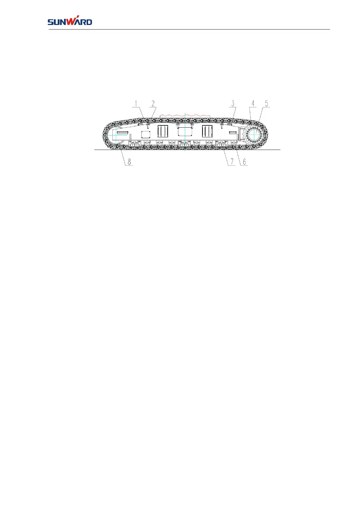 (5)Reduction gearbox(6)Track roller(7)Rail-clamp bracket(8)Idler