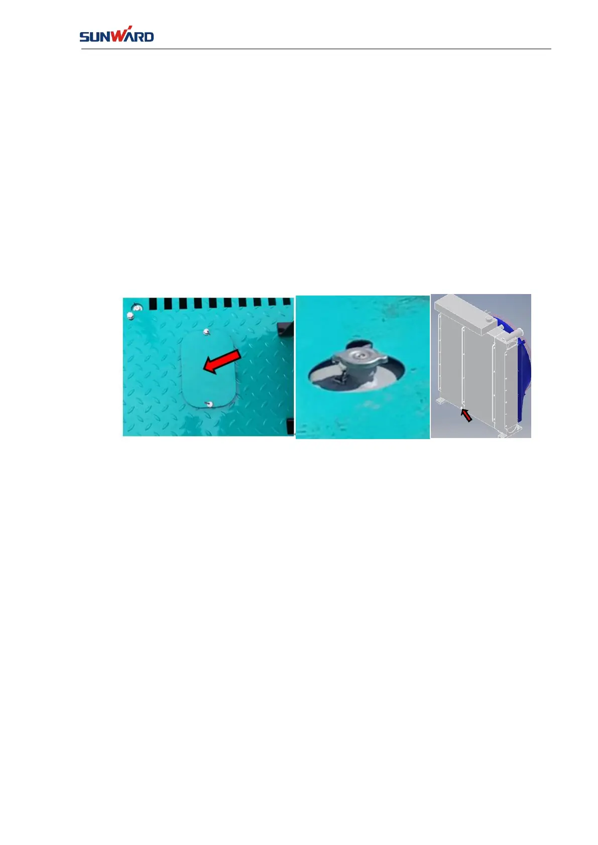 5. Add coolant into radiator, please refer to “8.3.14 Checking Coolant Level”