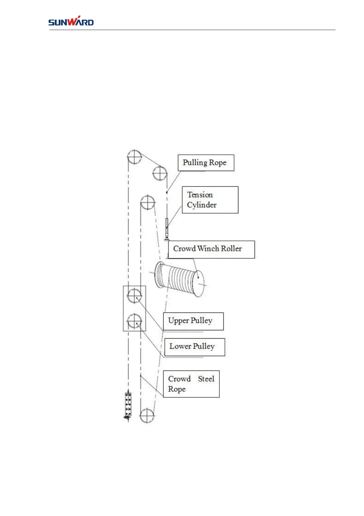 releases ropes by two ends. The crowd steel rope is fixed on the lower end of the drill mast after