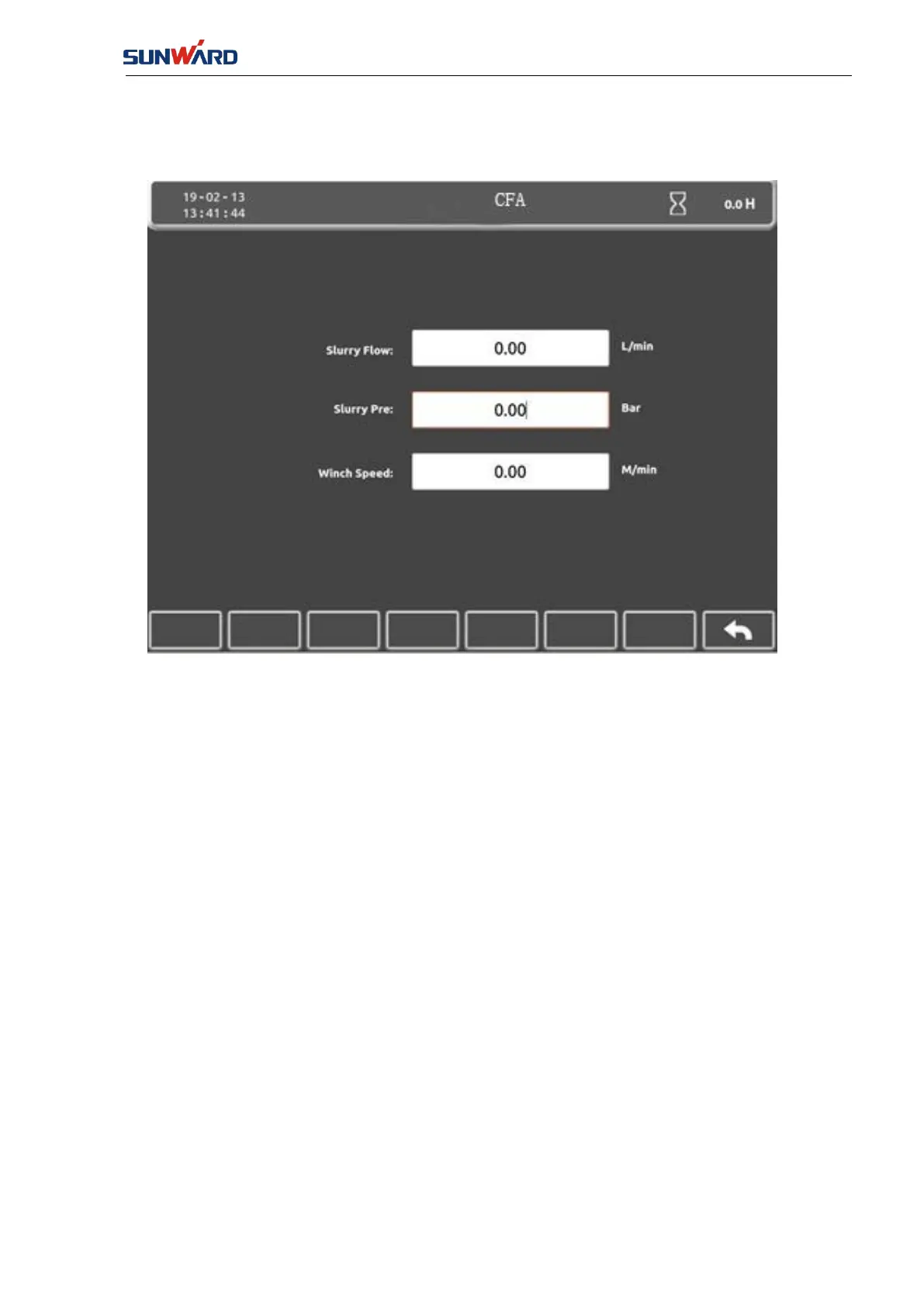 This interface shows the parameters that are related with CFA, including: slurry flow, pressure,