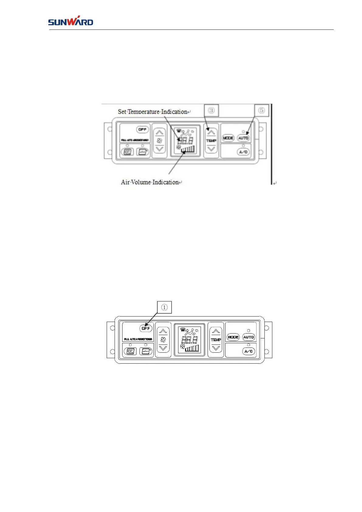1. The auto mode setting switch ⑤ is on and the temperature, air flow rate, auto switch, and