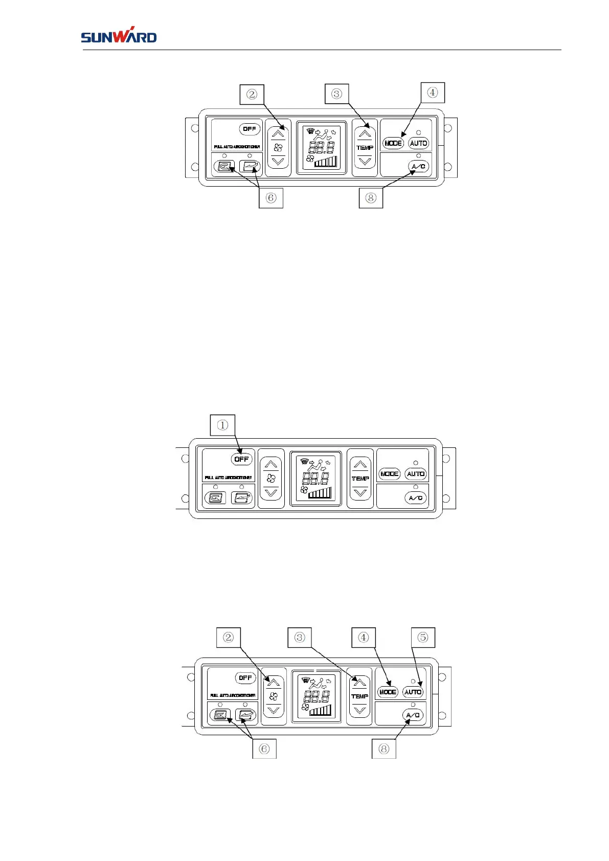 The set temperature and air flow rate indicators on the LCD screen as well as the auto switch