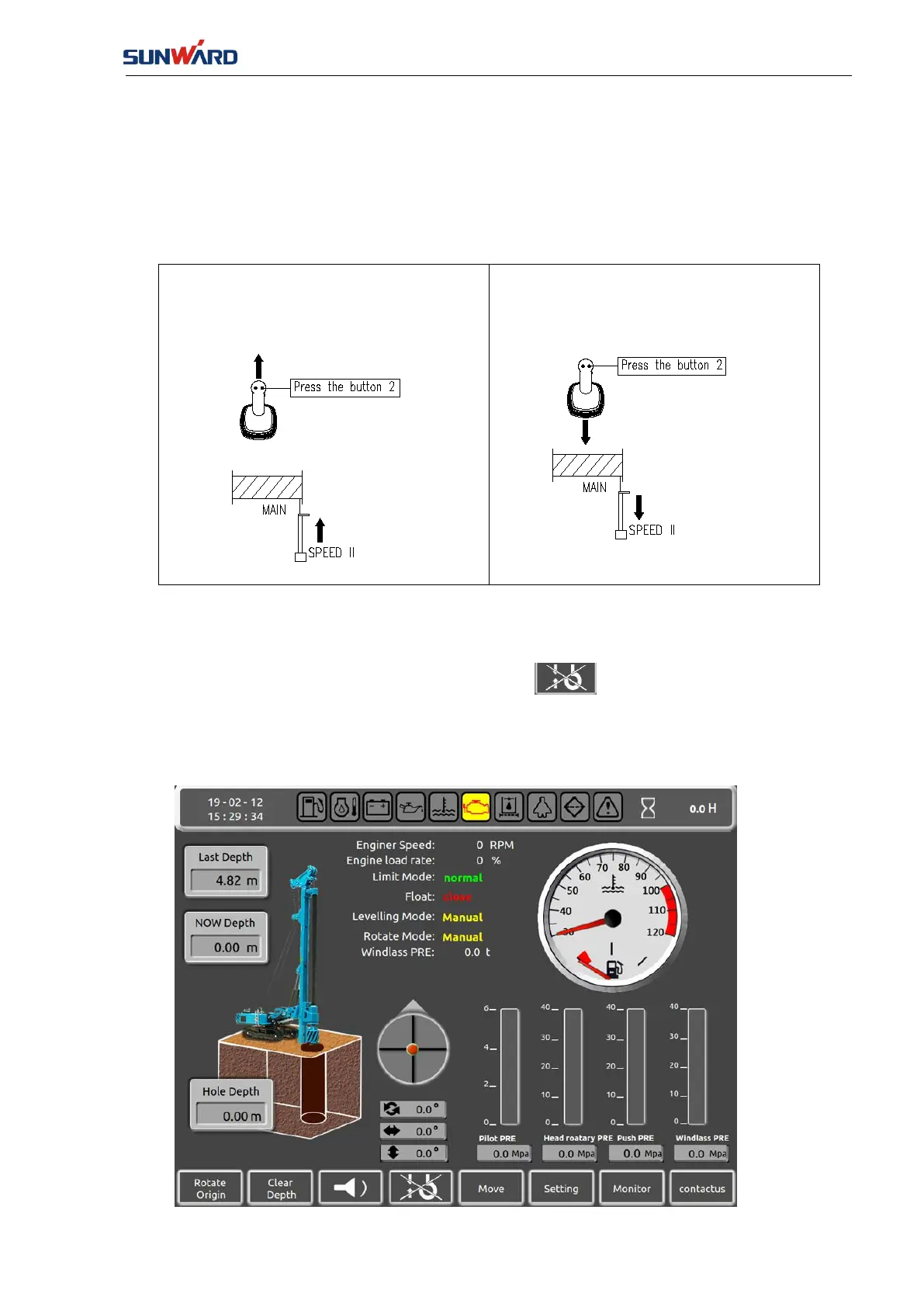 Press“Button 1”,push the left pilot handle