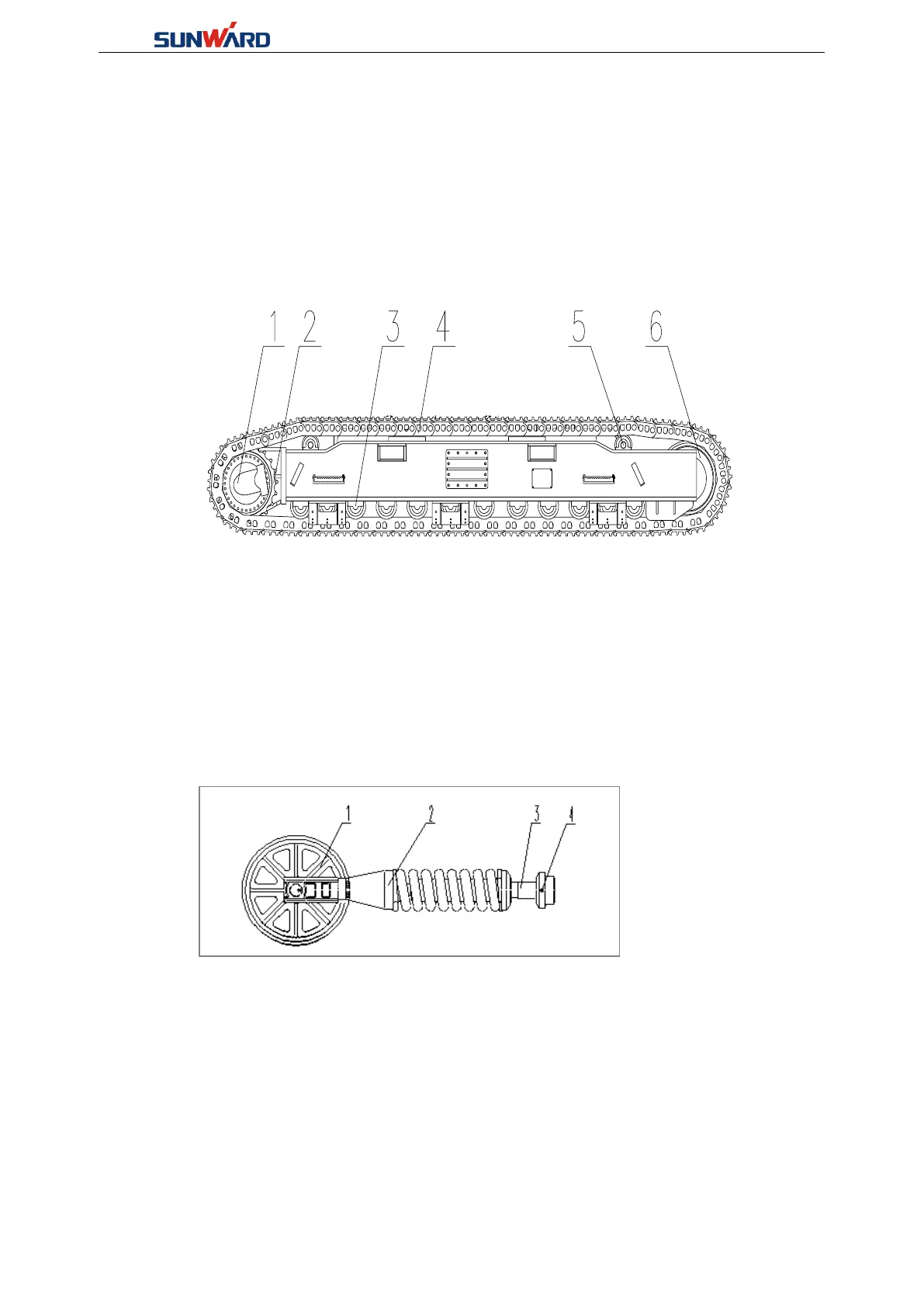 Crawler travel system(see fig 2-2) is composed of guide wheel, tension device, crawler
