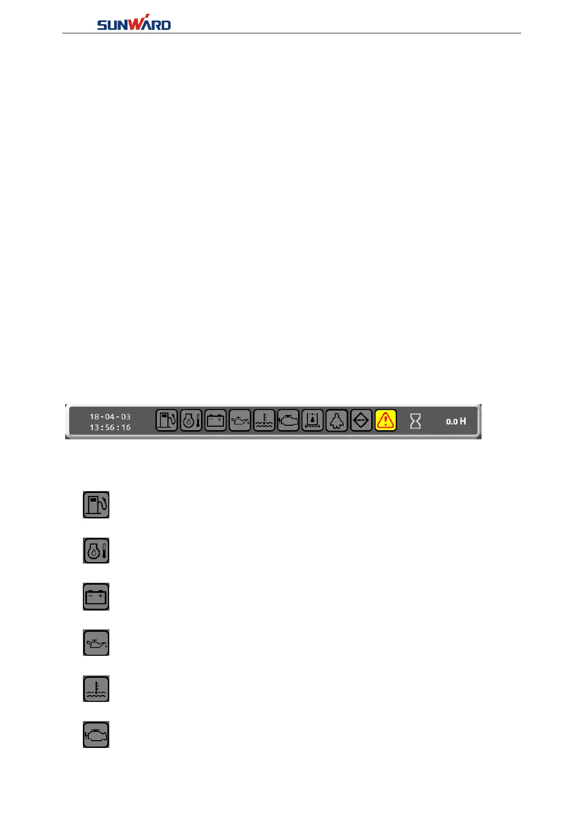 Engine failure alarm prompt: this icon will turn yellow bottom with red line when the