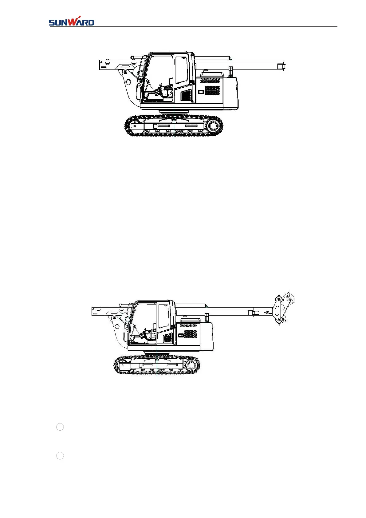 1. Lift the assembly of drill mast 2 and cathead to close to the tail part of drill mast 2, so as to
