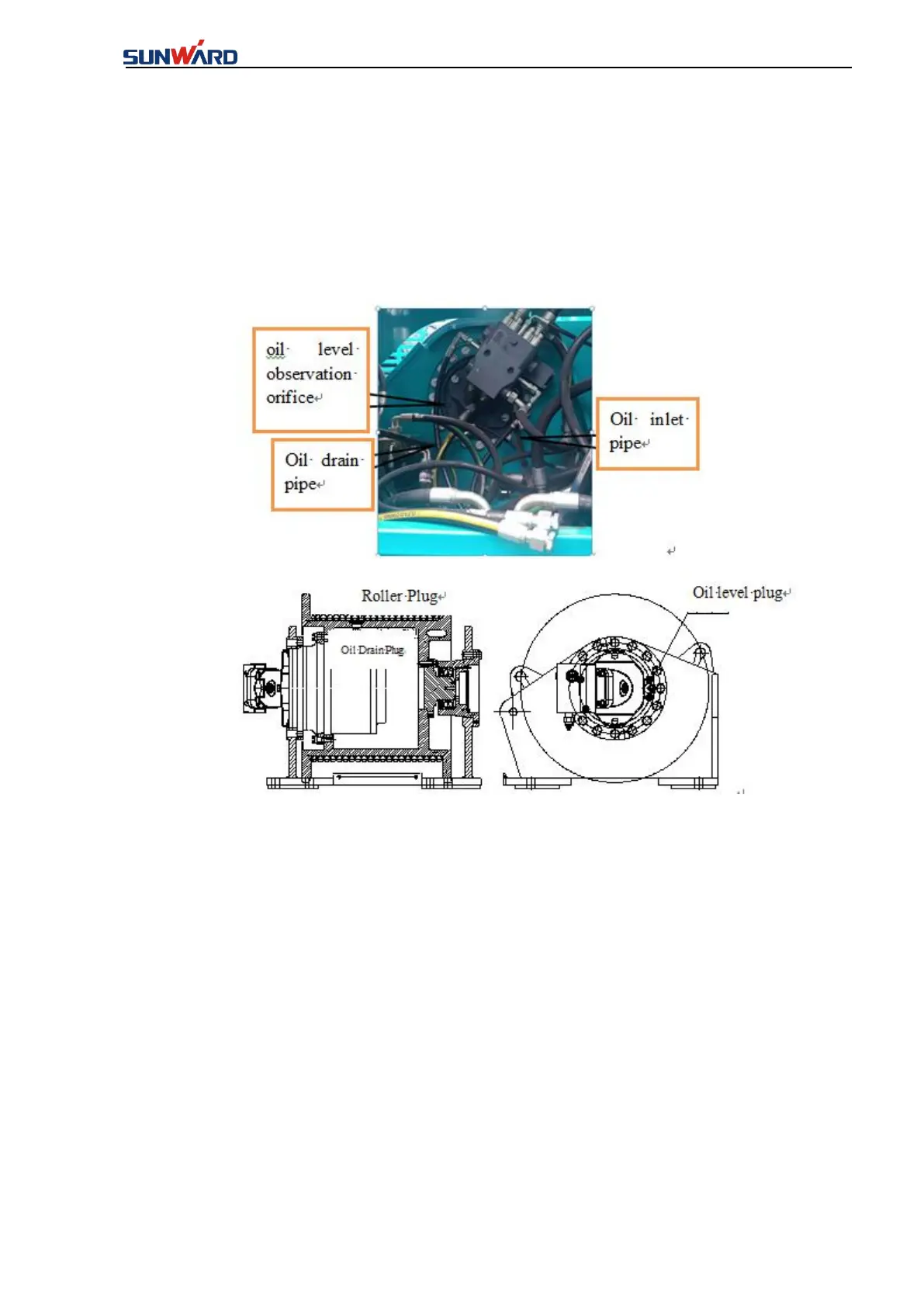 Remove oil drain plug of reduction gearbox and the plug of oil level sightglass, and