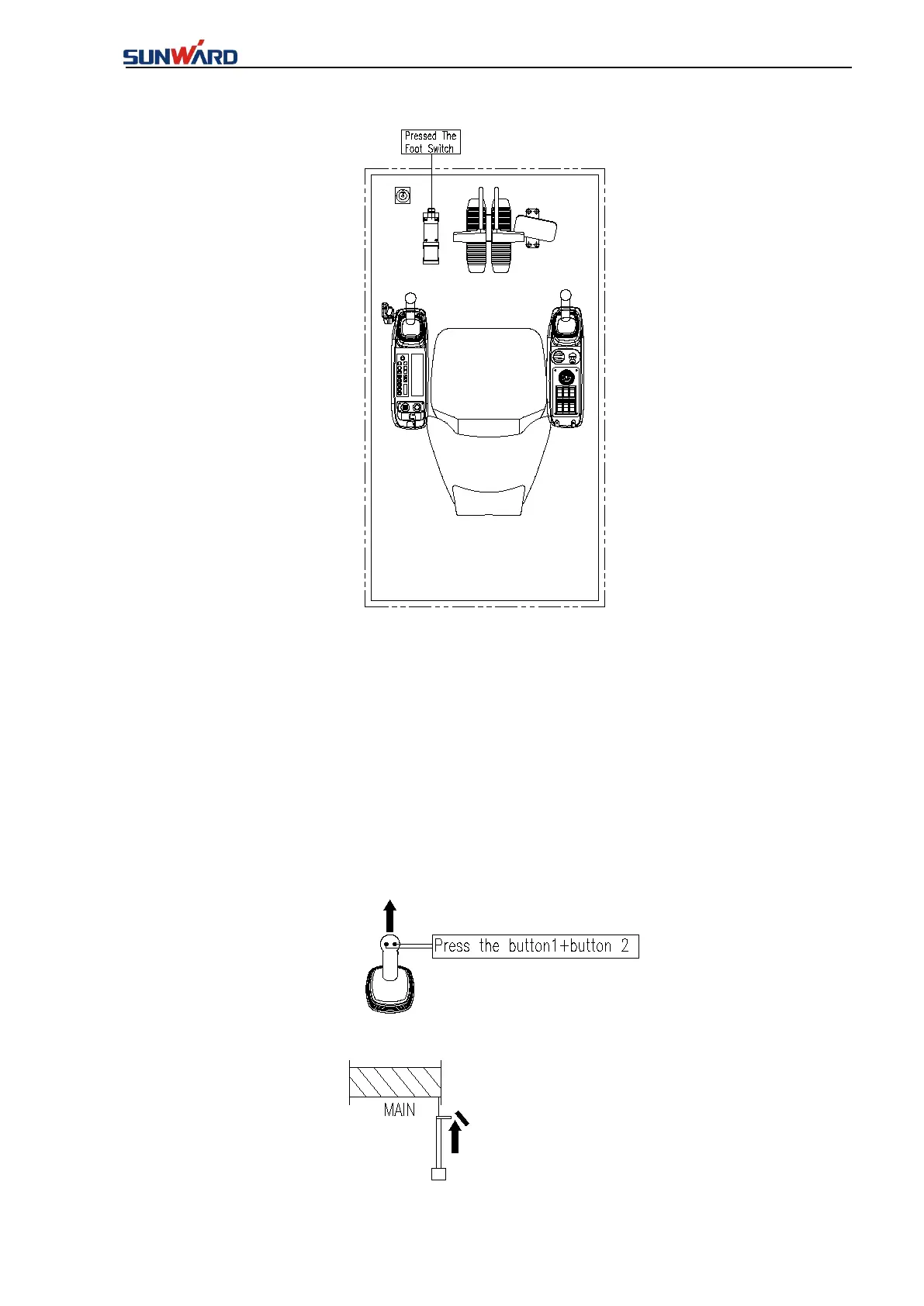 handle rearward, press down both SB1 and SB2 buttons together, operate the main winch to rise