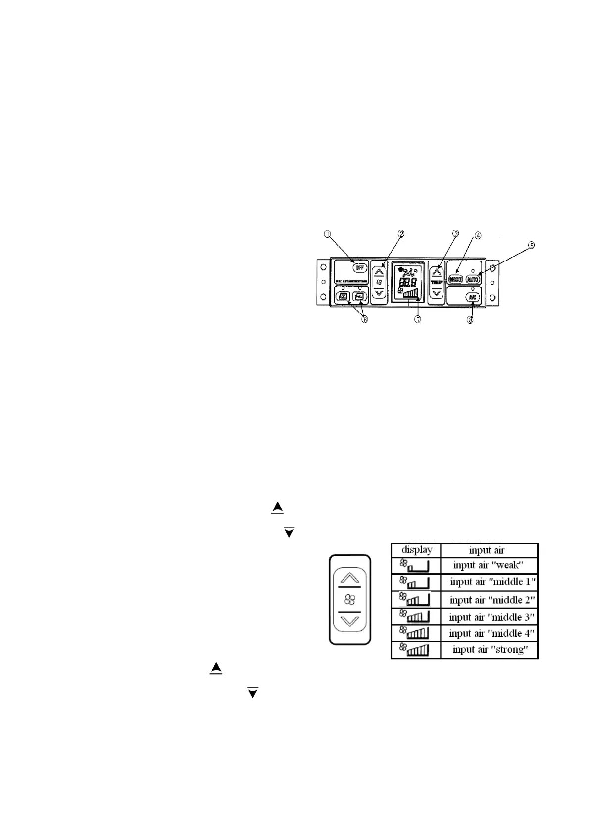 Remark: when the function of auto mode setting switch 5, inner/exterior air-in switch 6 and air