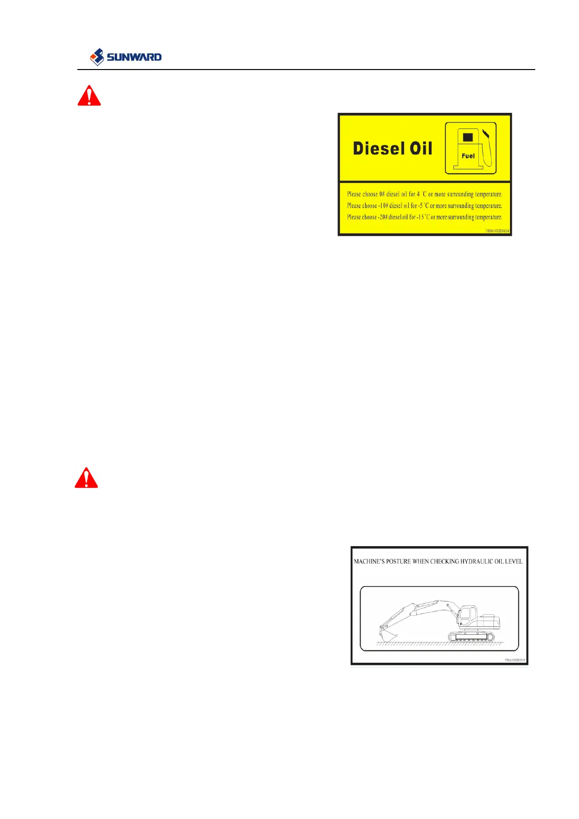 Do not start engine when hydraulic oil tank