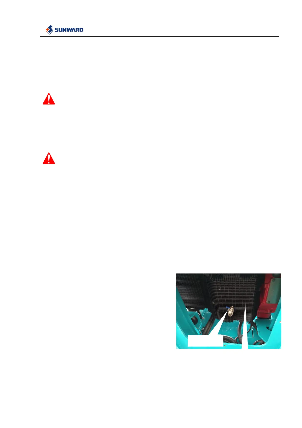 Loosen drain valve underneath diesel oil tank to drain